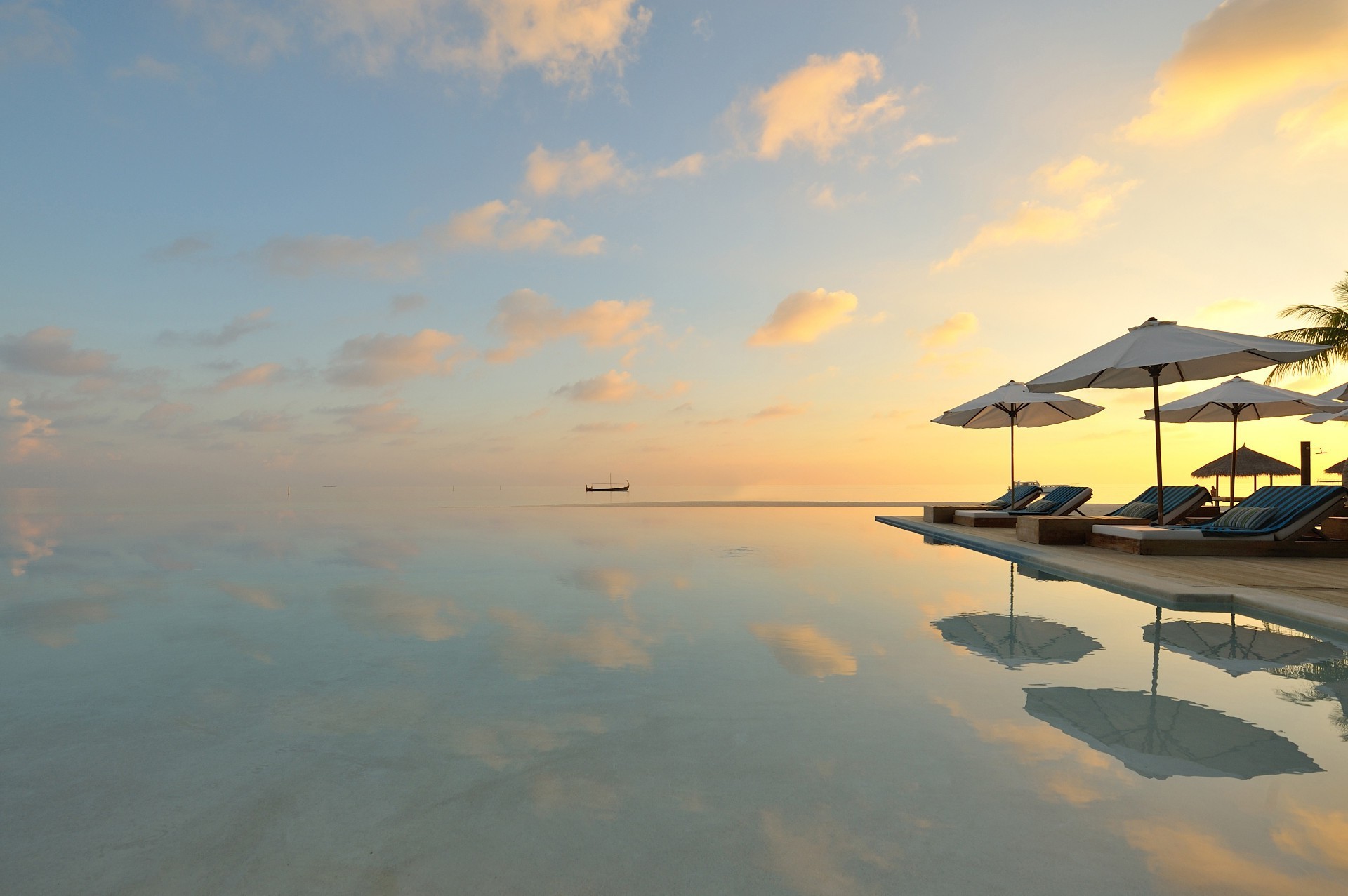Pôr do sol refletido na água com moinhos de vento ao longo da Costa