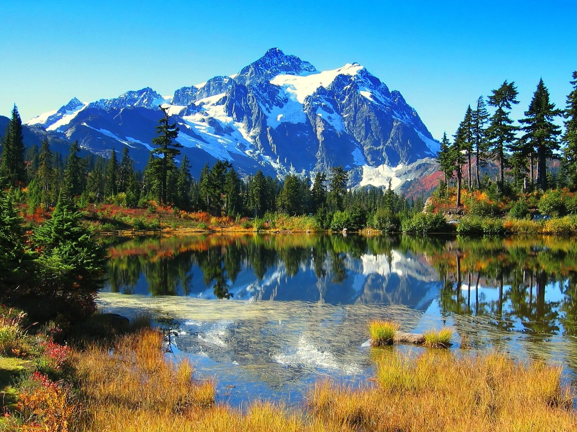 Paisagem das montanhas no fundo do Lago dos espelhos