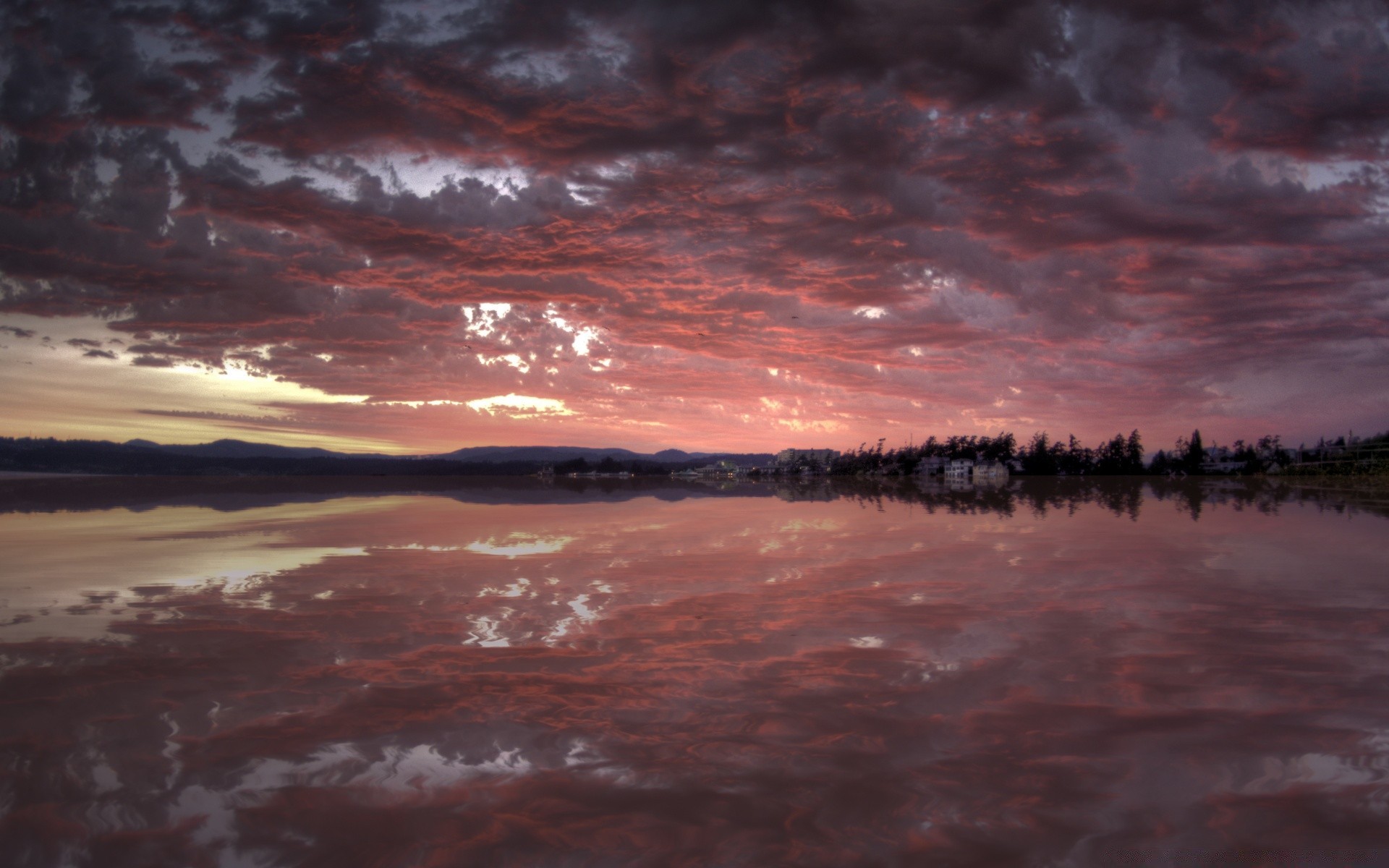 Pôr do sol vermelho sobre a água grande