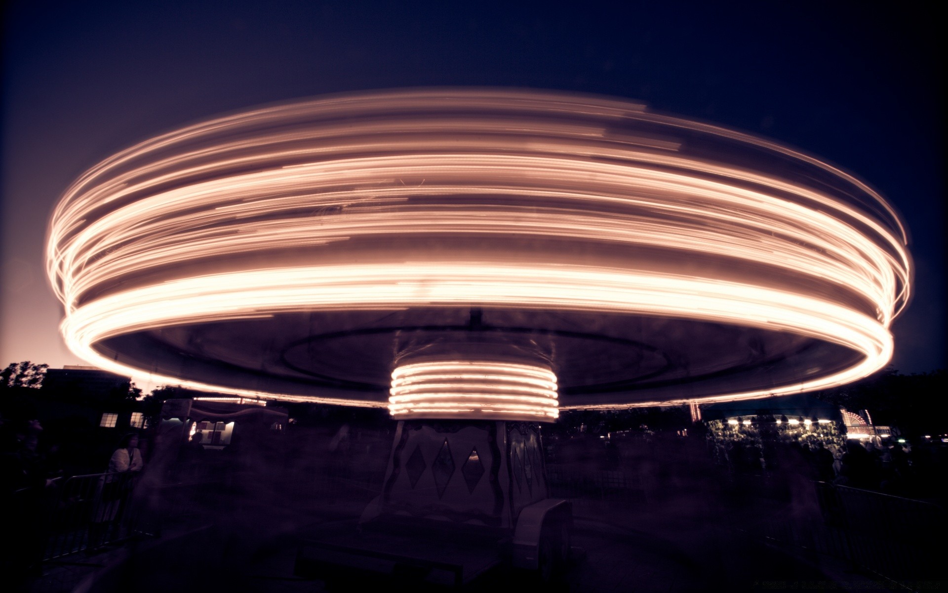 Atrações do Parque da cidade contra o pano de fundo do borrão da noite