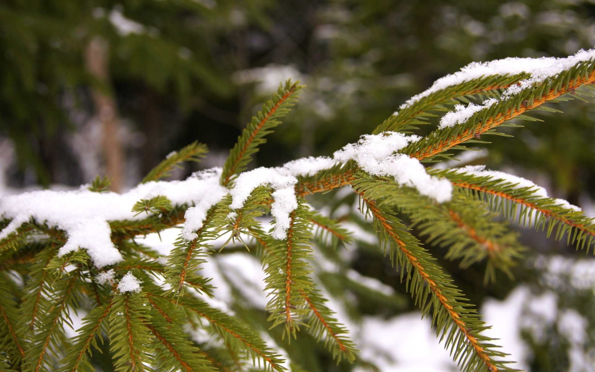 Ramo de abeto verde e coberto de neve