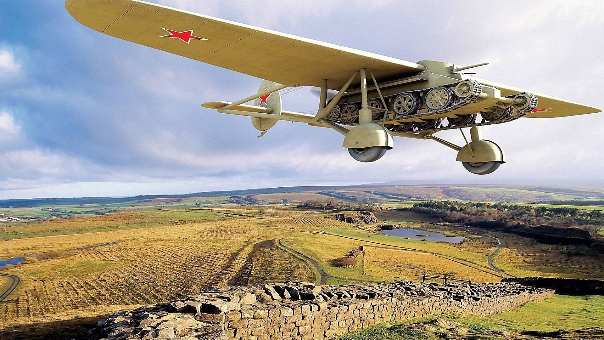 Tanques rugiram sobre o campo, um avião os levantou para o céu