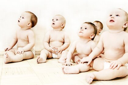Seis crianças olham para o teto