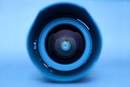 Lente azul olha para a câmera