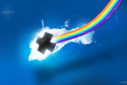 Um arco-íris no céu voa para as nuvens
