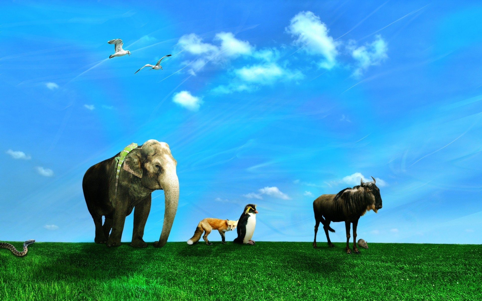 Impossível possível rebanho de elefante pinguim e raposa, sur