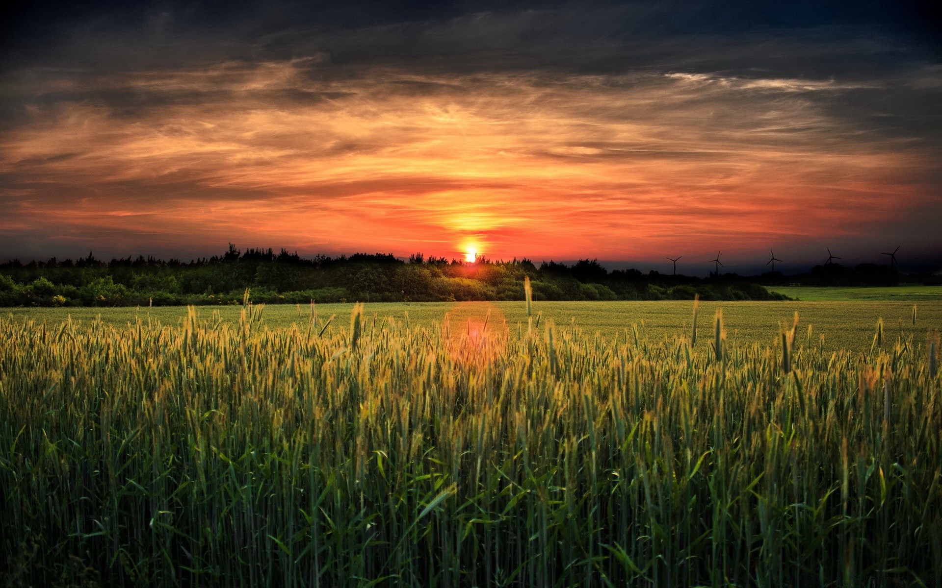 Pôr do sol no campo de trigo