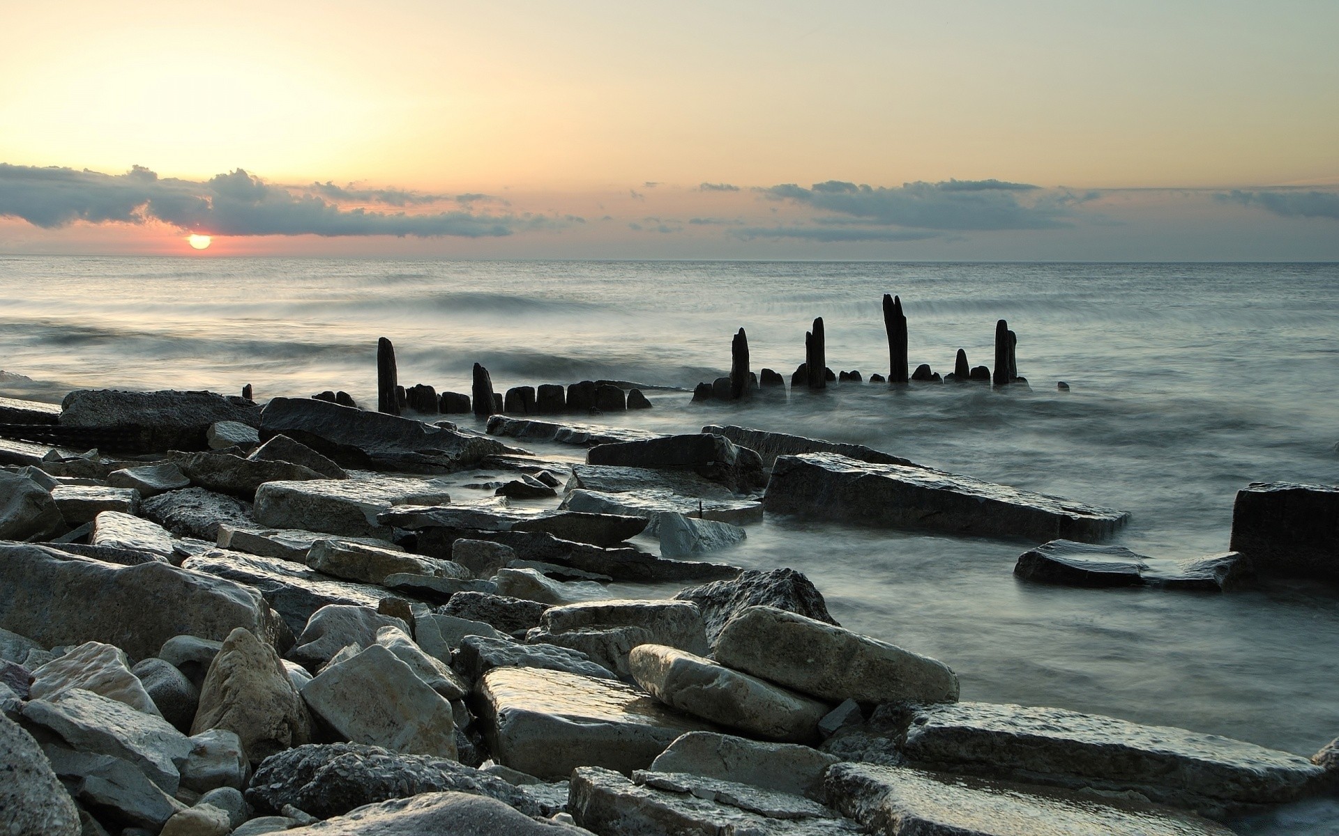 Rio de pedra ao pôr do sol