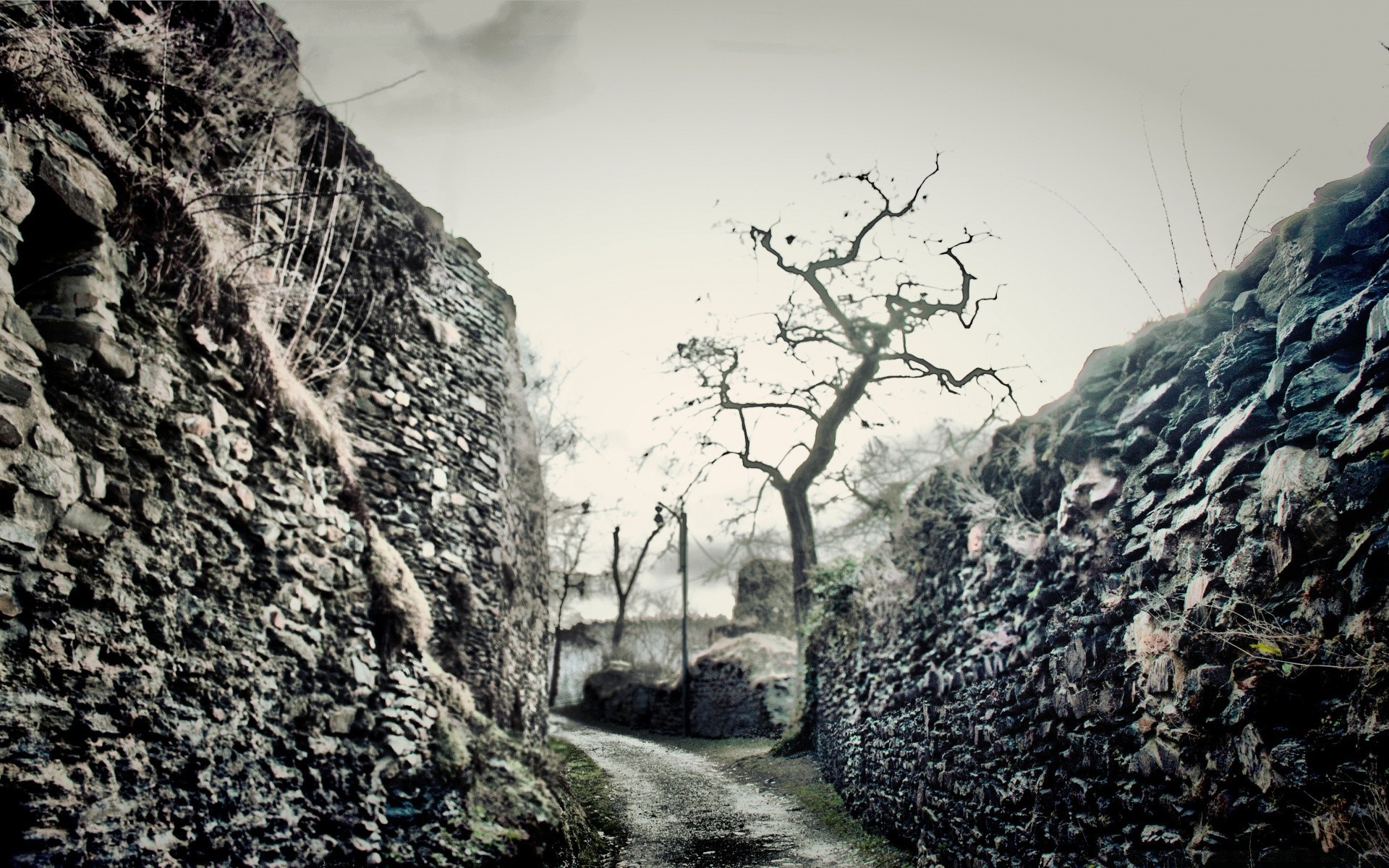 Viajante a cavalo. arquitetura antiga. arco destruído