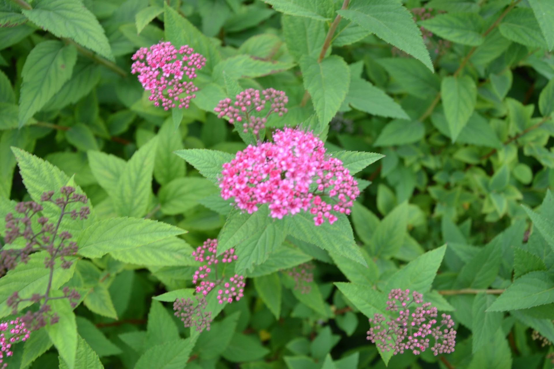Flores cor-de-rosa entre verdes