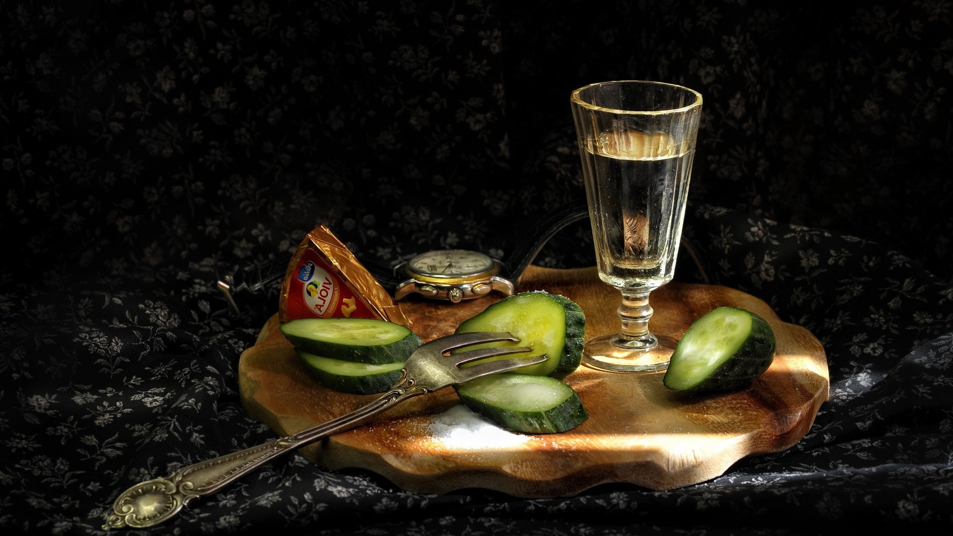 Um copo de vodka com pepino e queijo