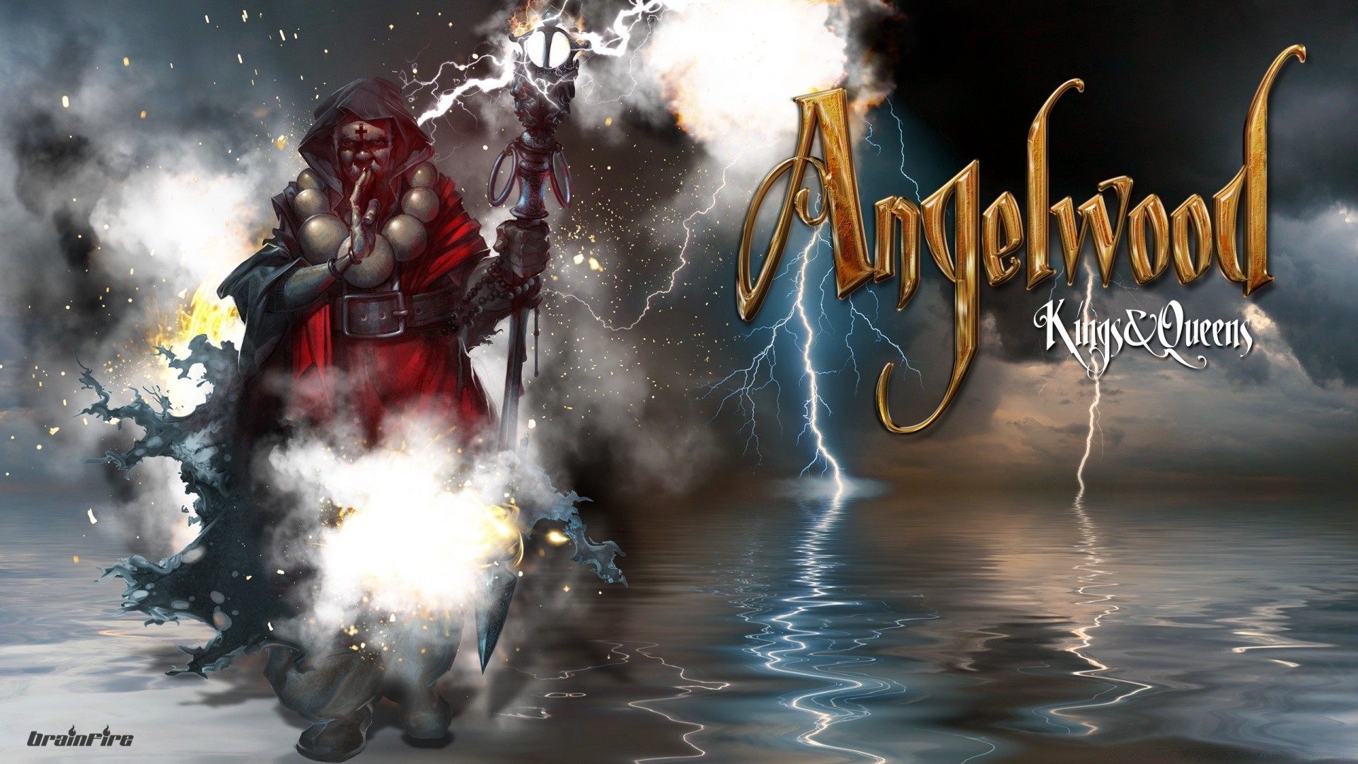 Mago em pé no mar em uma tempestade