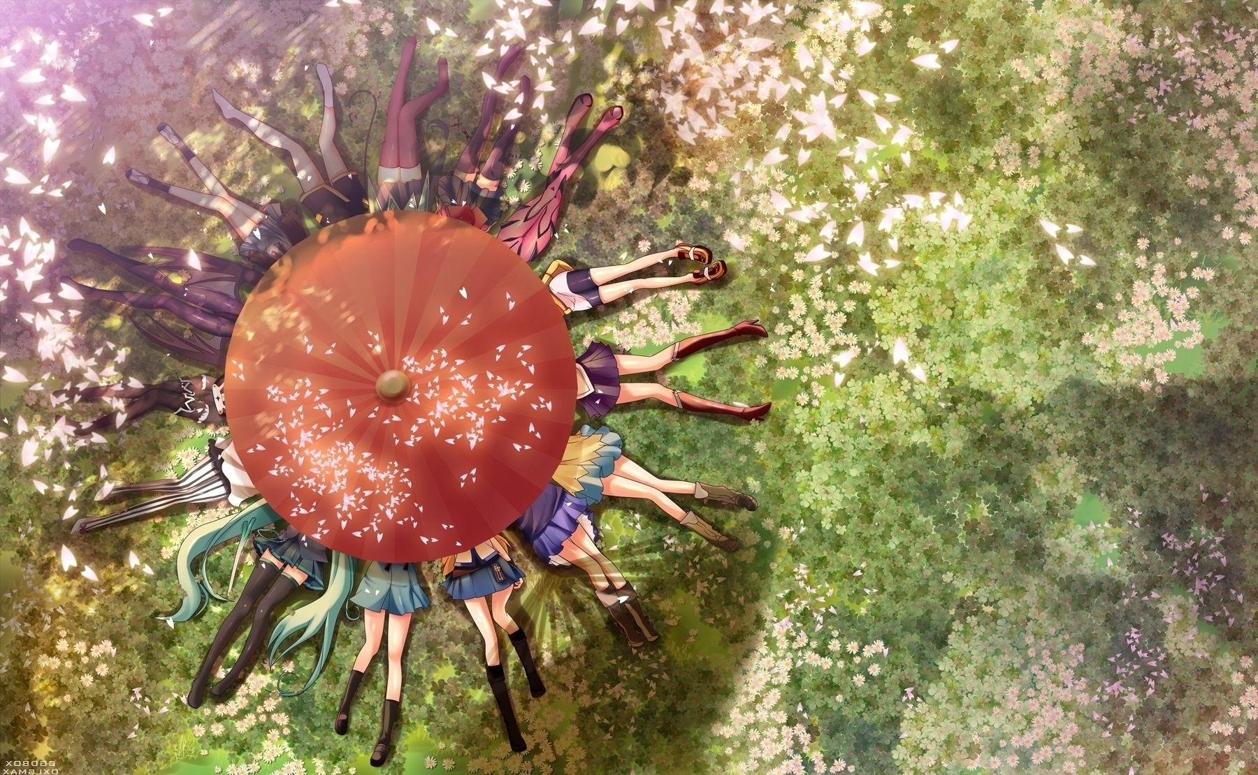 Heróis guarda-chuva vermelho clareira Flores pernas heroína anime