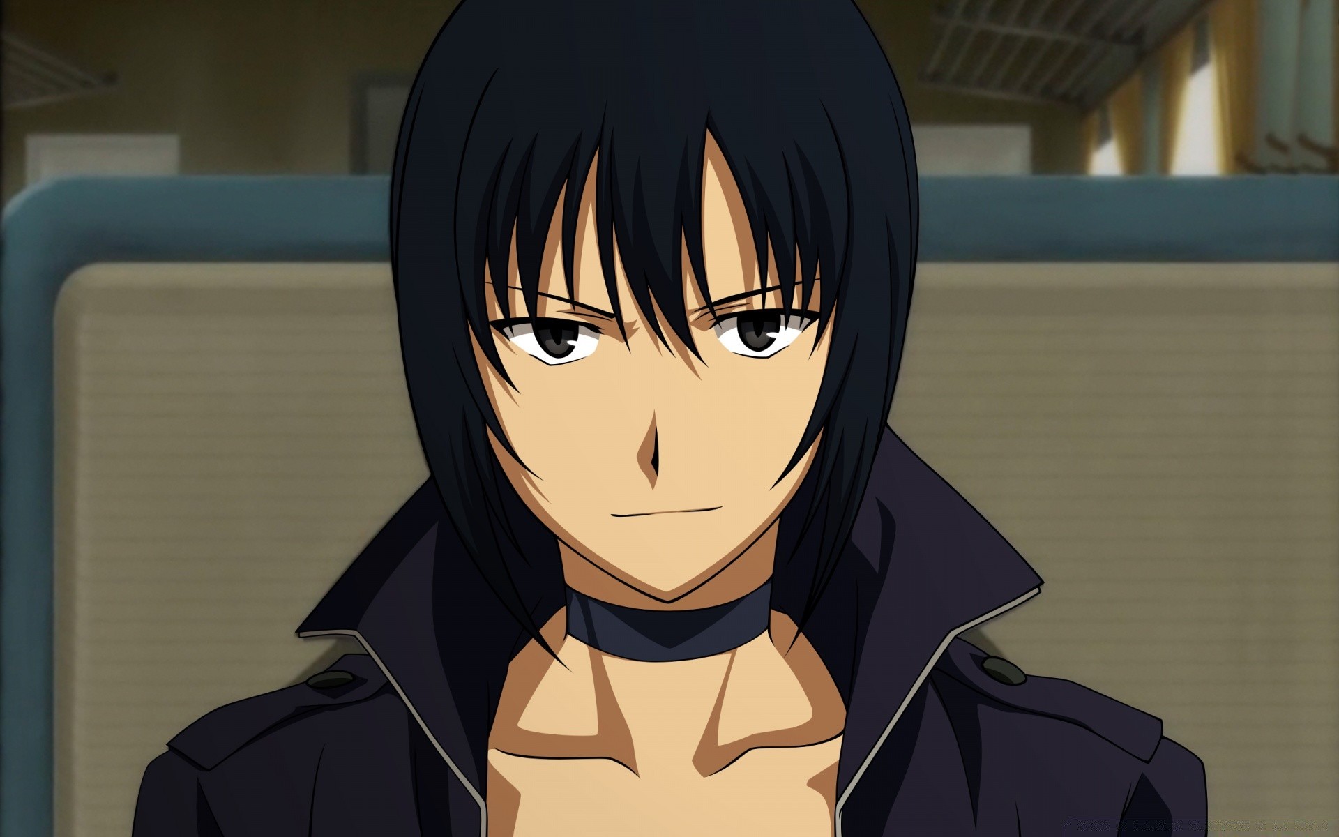 Personagem de anime com cabelo azul em um fundo pretoPersonagem de anime com cabelo azul em um fundo preto