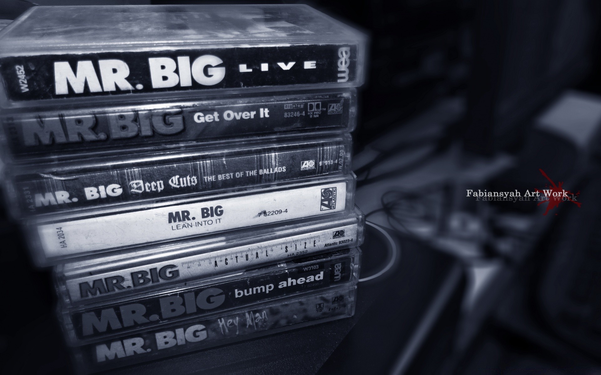 Uma pilha de cassetes de áudio em um objeto escuro
