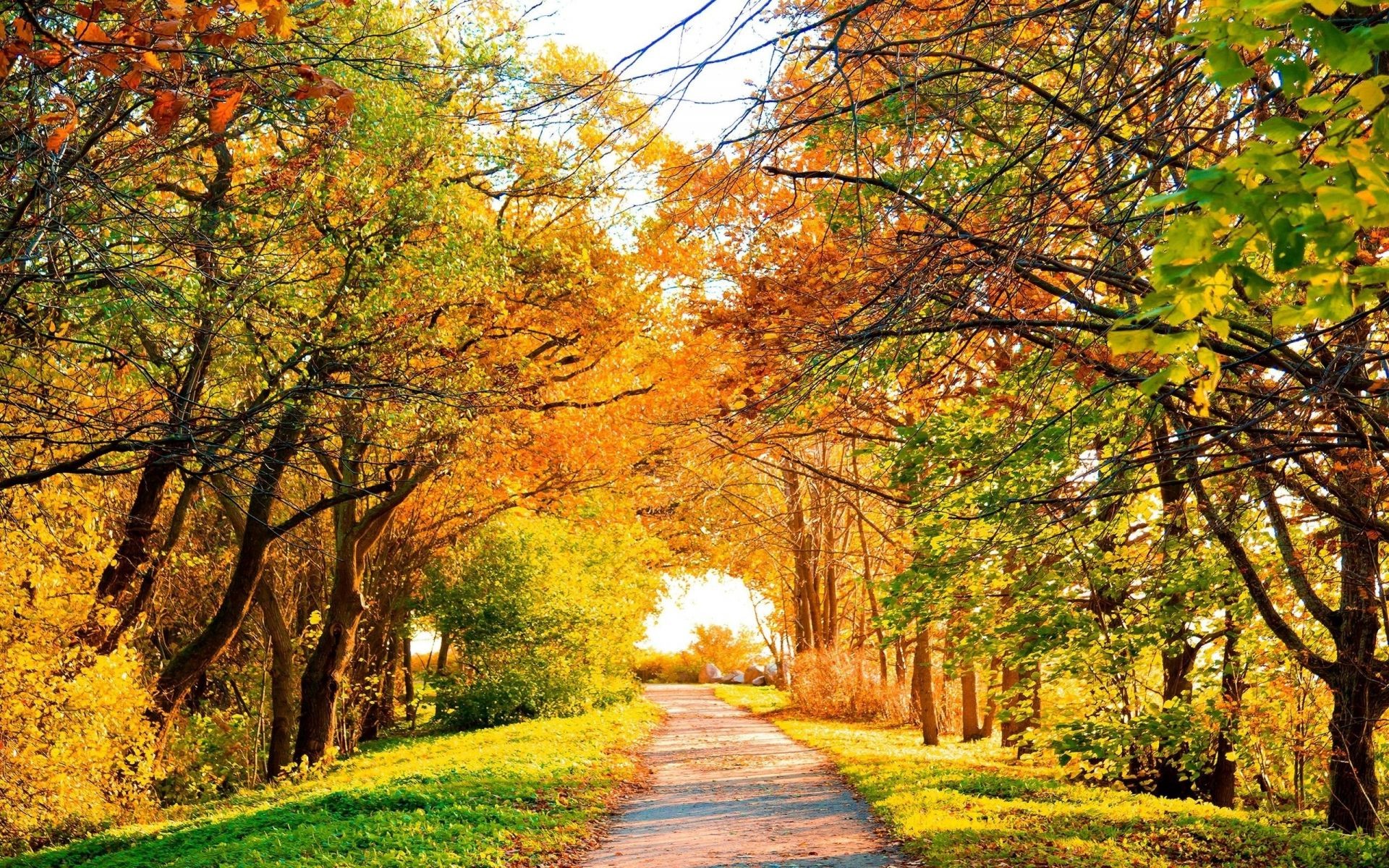 Parque de outono em um dia quente