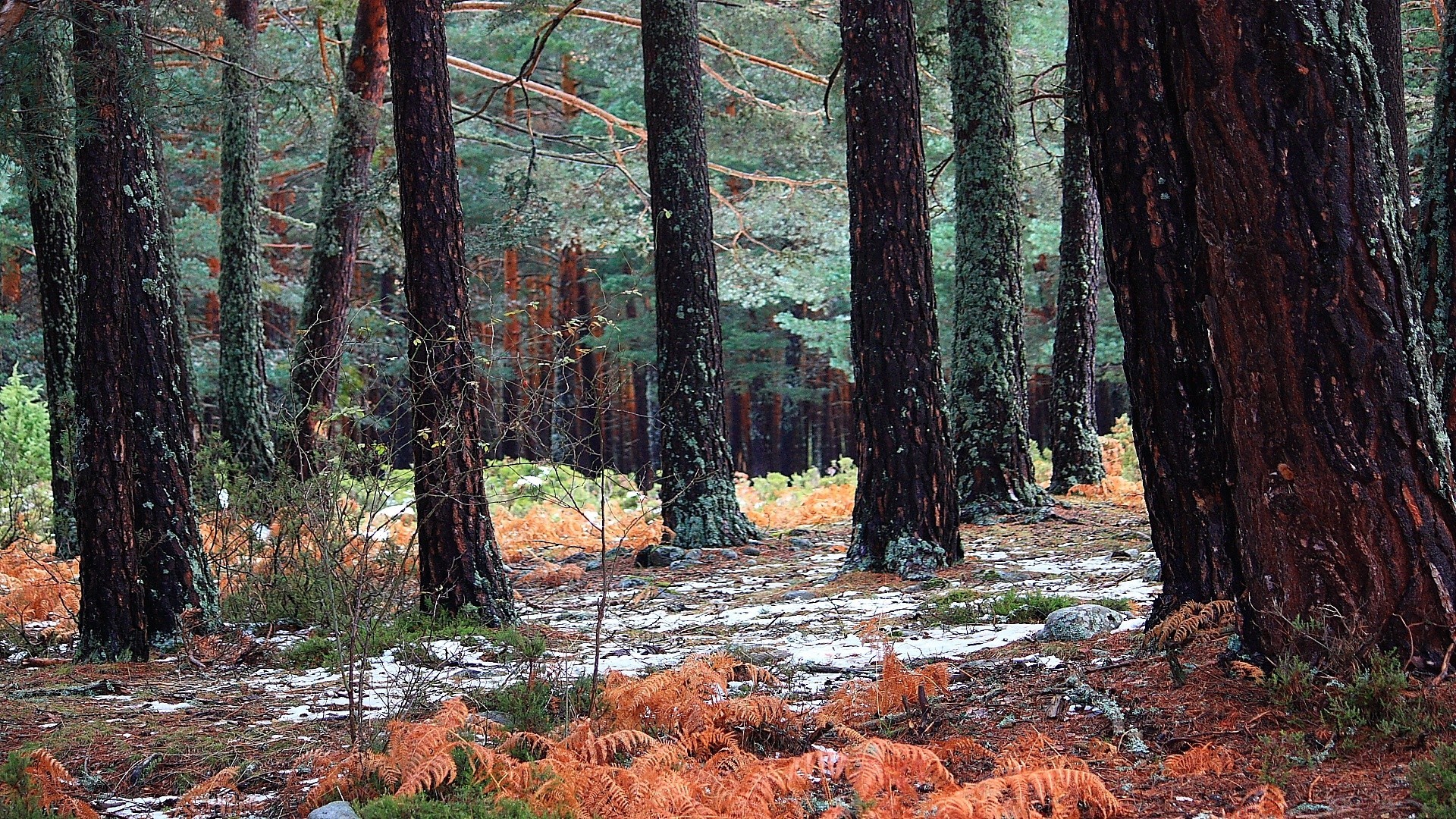 Ramos de agulhas iluminadas pela luz mesquinha do sol