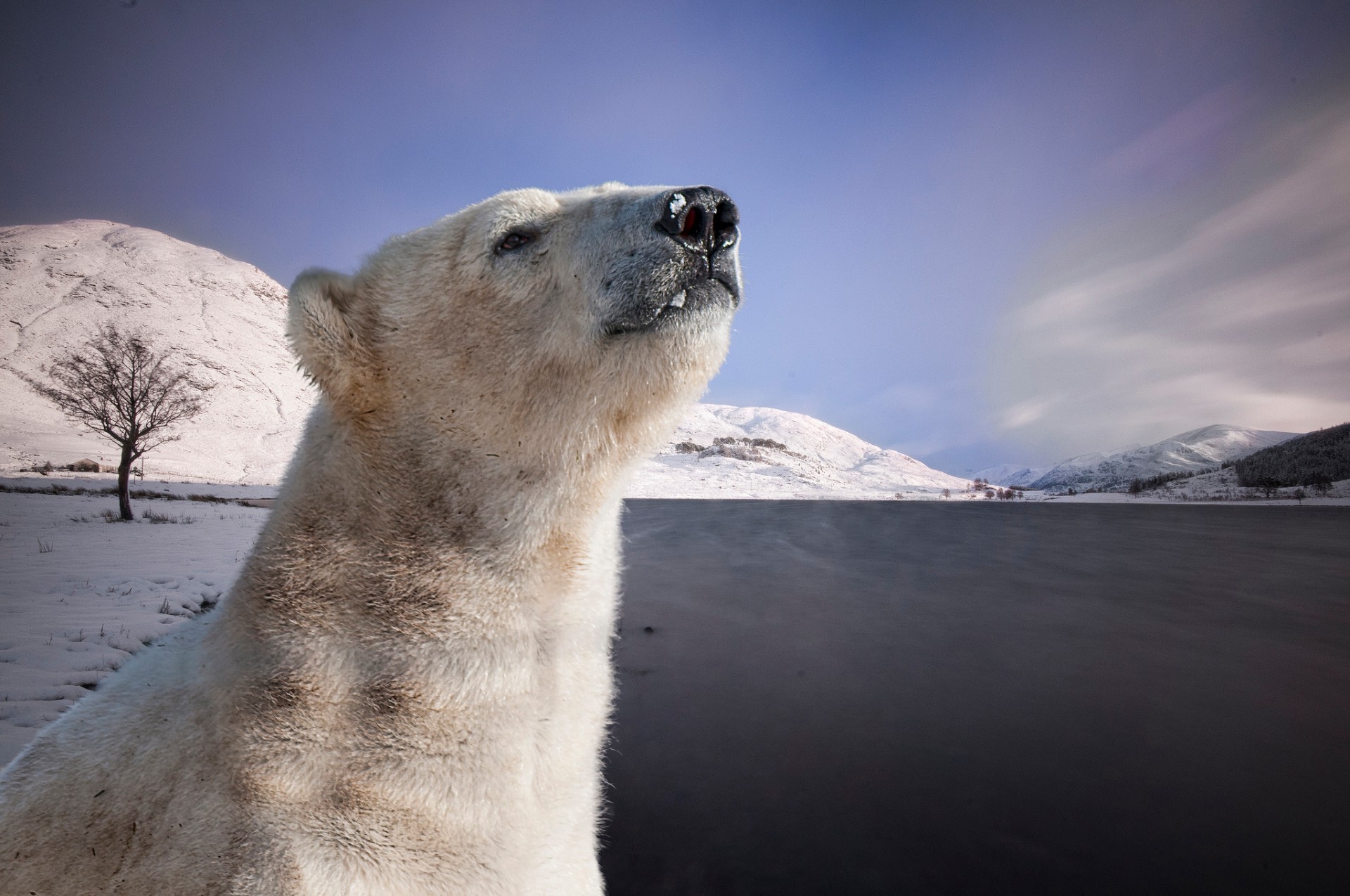 Urso polar com focinho ensanguentado