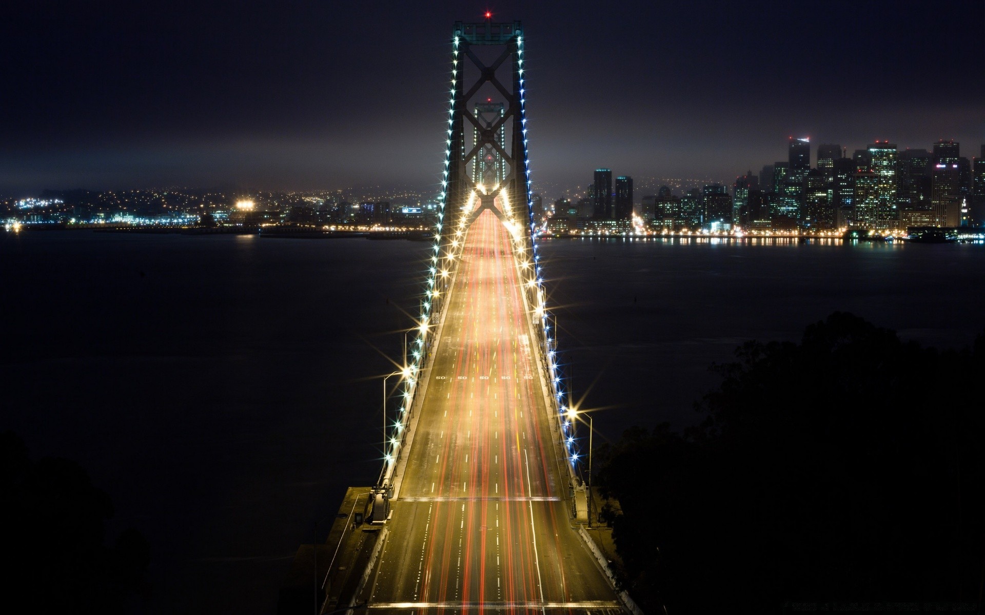 Tráfego de fluxo de carro luzes desfocadas na ponte
