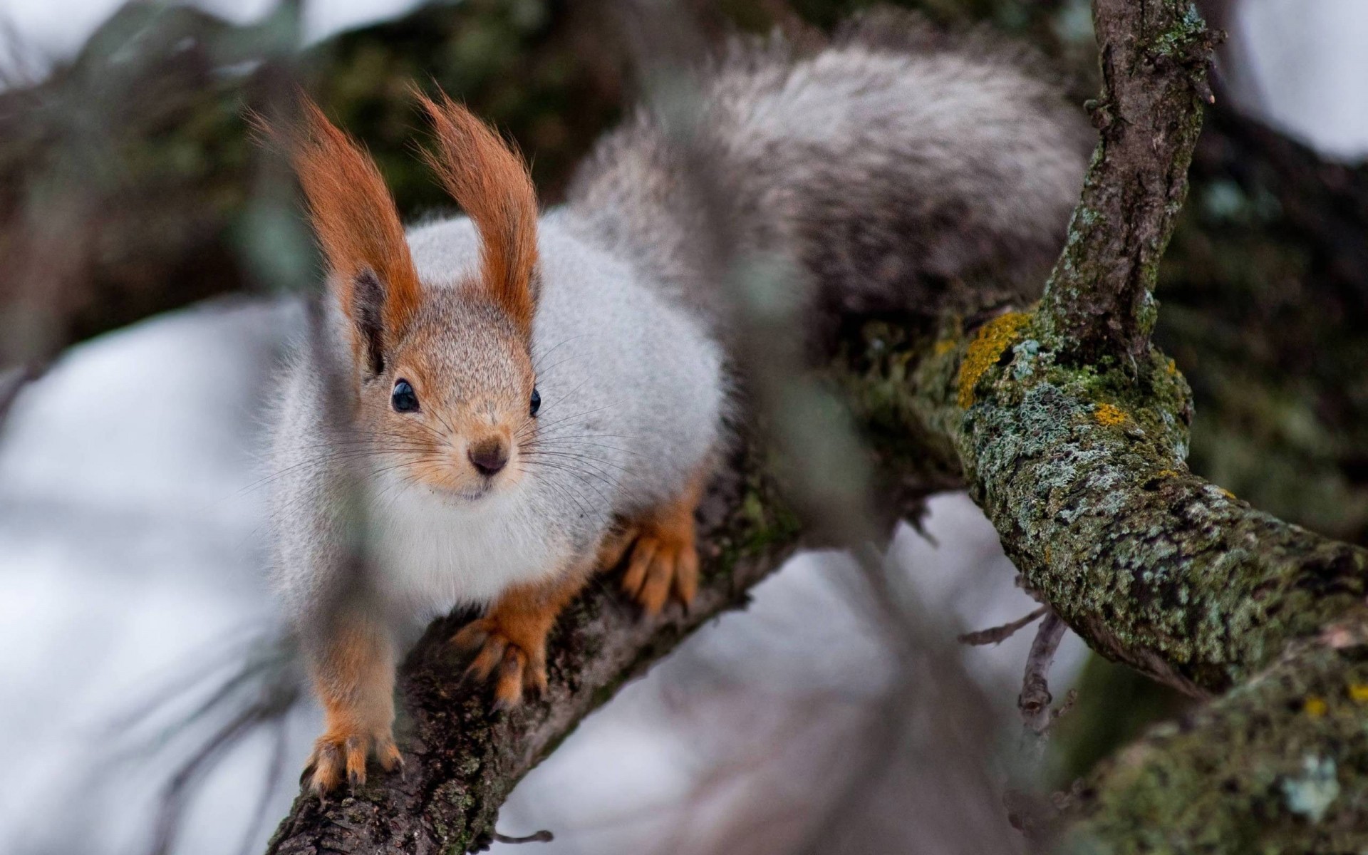 Esquilo Selvagem sobrevive na floresta de Inverno