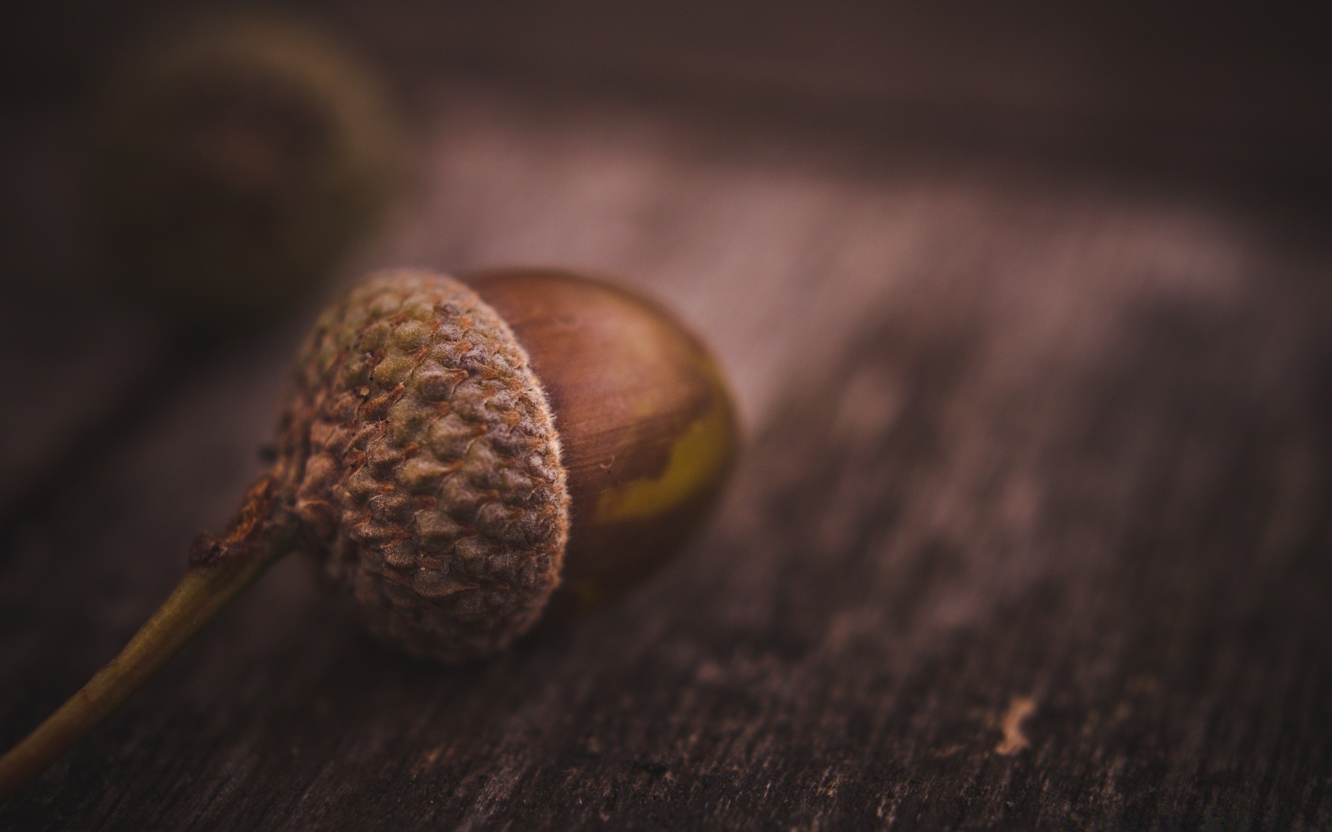 Foto misteriosa de uma bolota em um fundo de madeira borrada