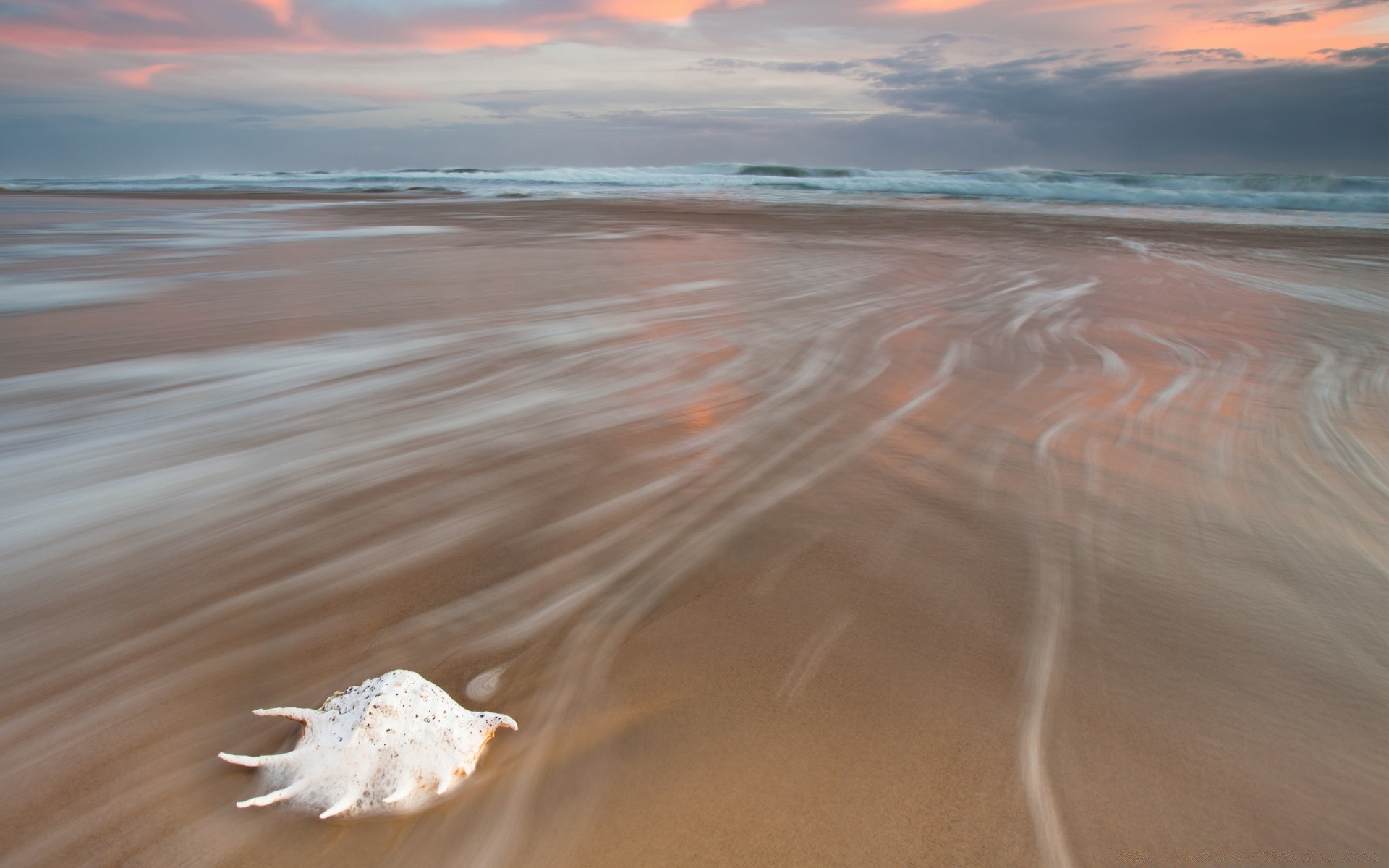 Praia oceânica ao pôr do sol com areia em cores amarelas