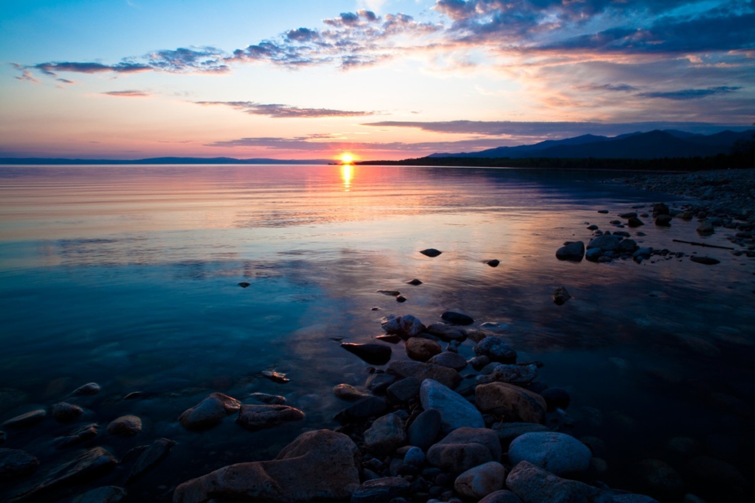 Pôr do sol e amanhecer na praia do mar e do oceano na água