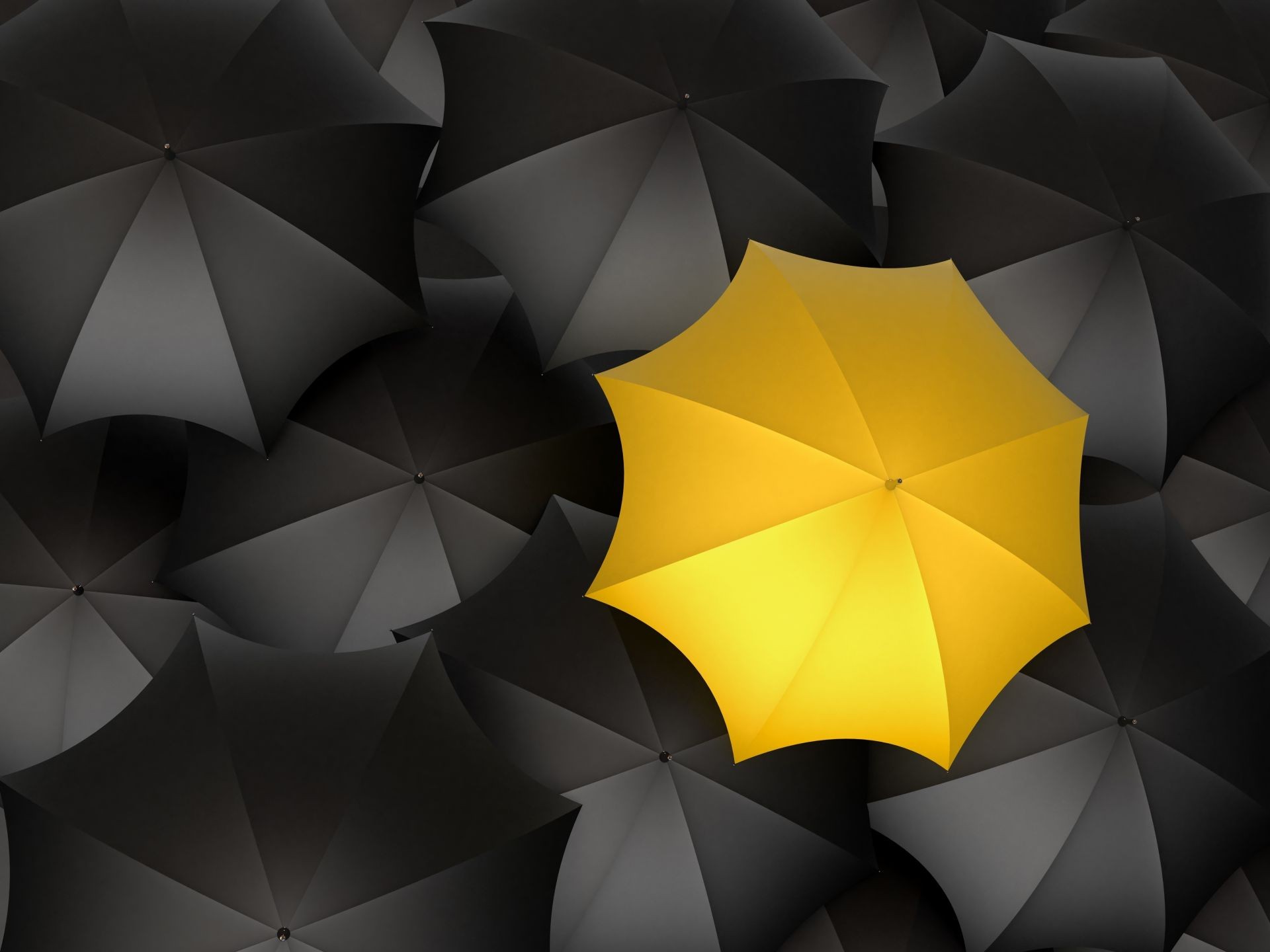 Contraste. Guarda-chuva amarelo contra fundo preto