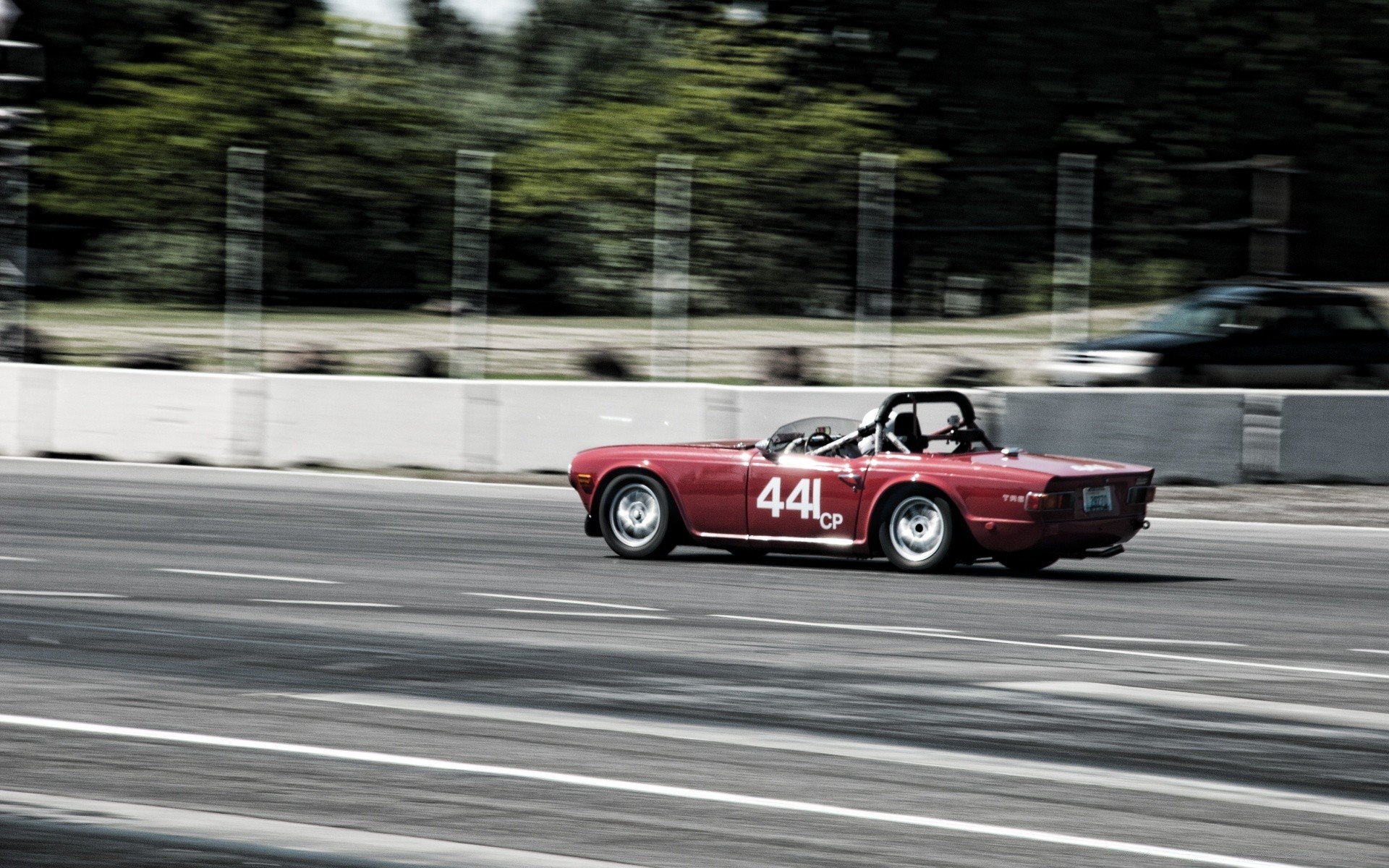 Um carro rápido voa pela estrada