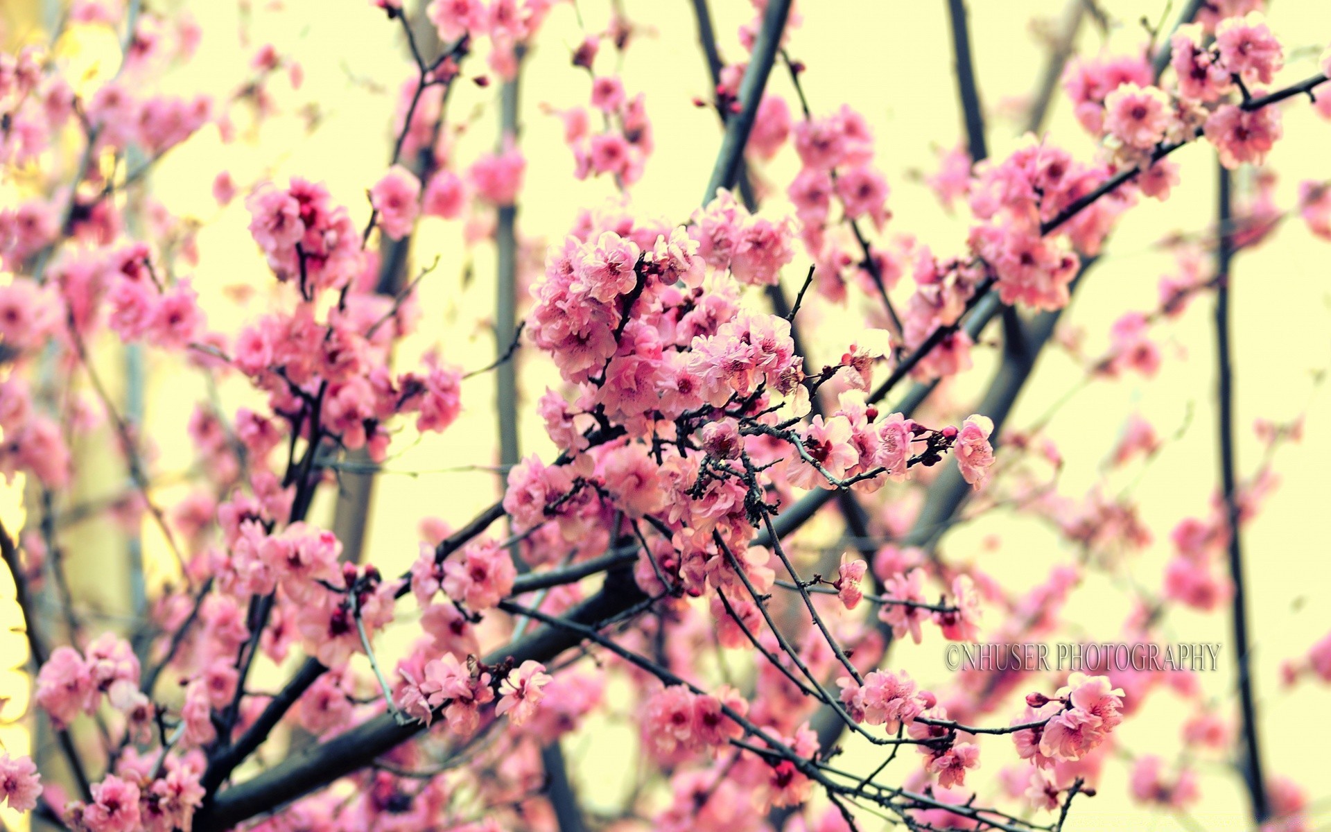 Ramo de cerejeira florescendo com flores cor-de-rosa