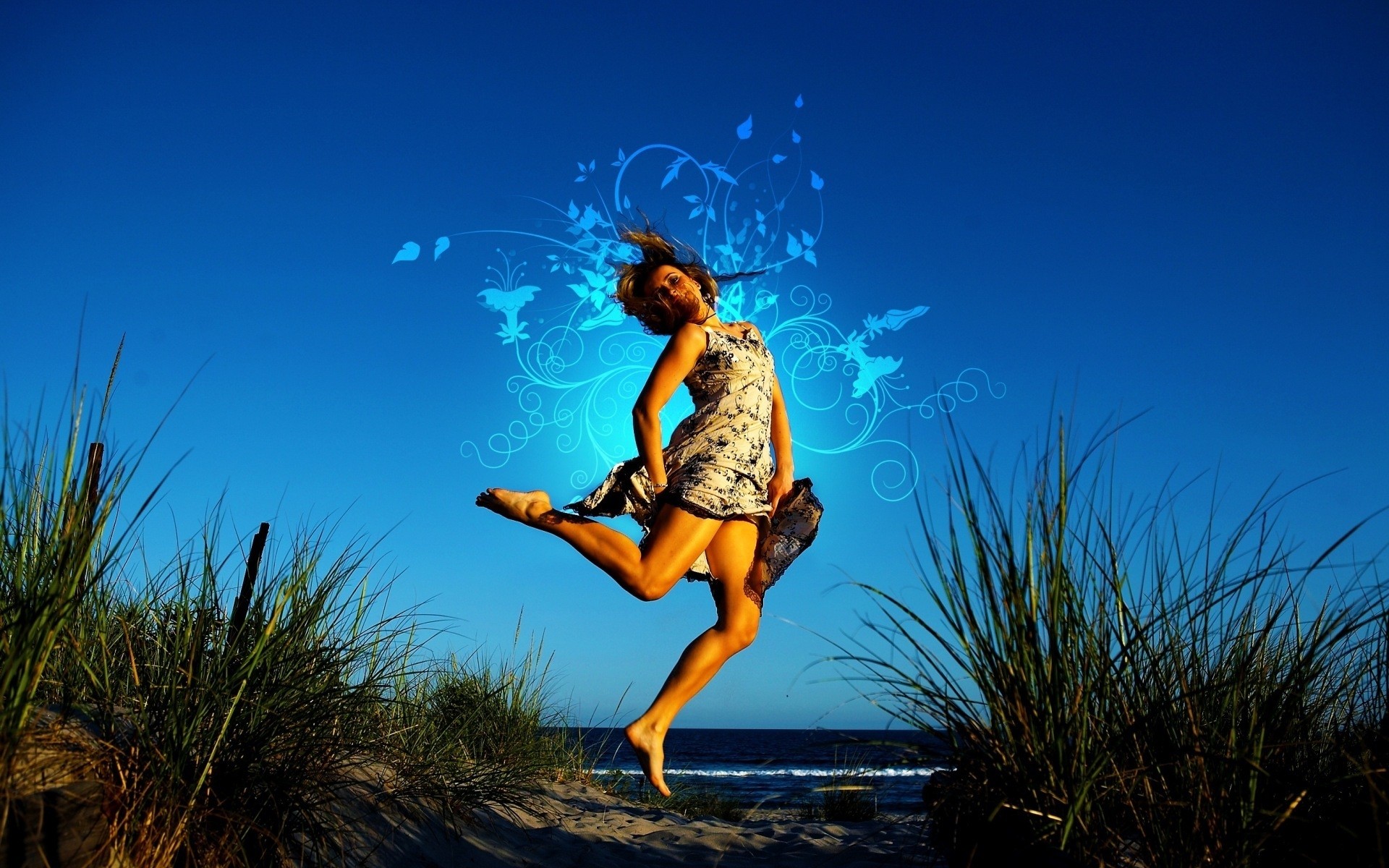 Paisagem de verão com pôr do sol e elementos fantásticosPaisagem de verão com Pôr do sol e elementos fantásticos