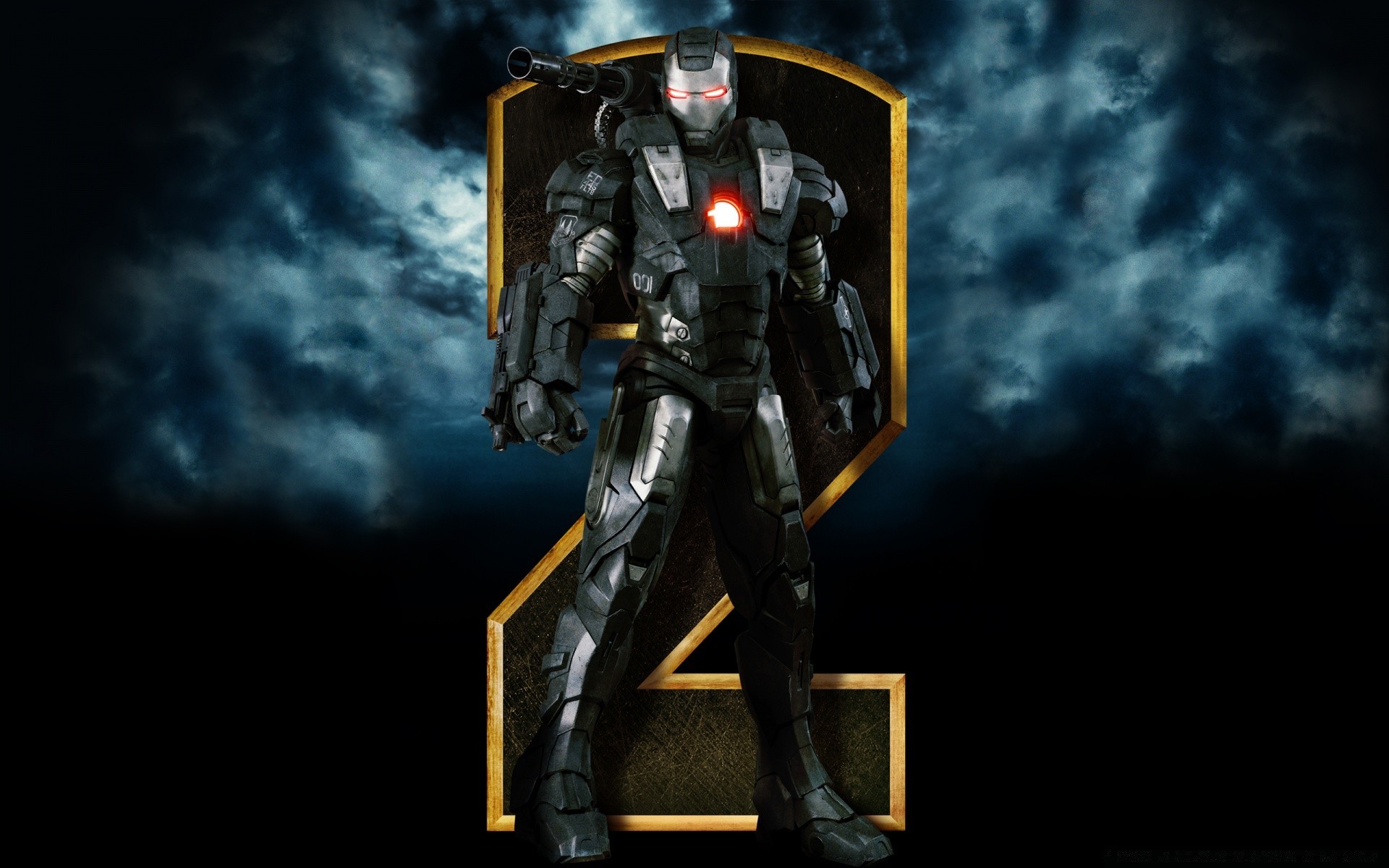 Homem de ferro contra o número 2 e o céu escuro. Nuvens de tempestade