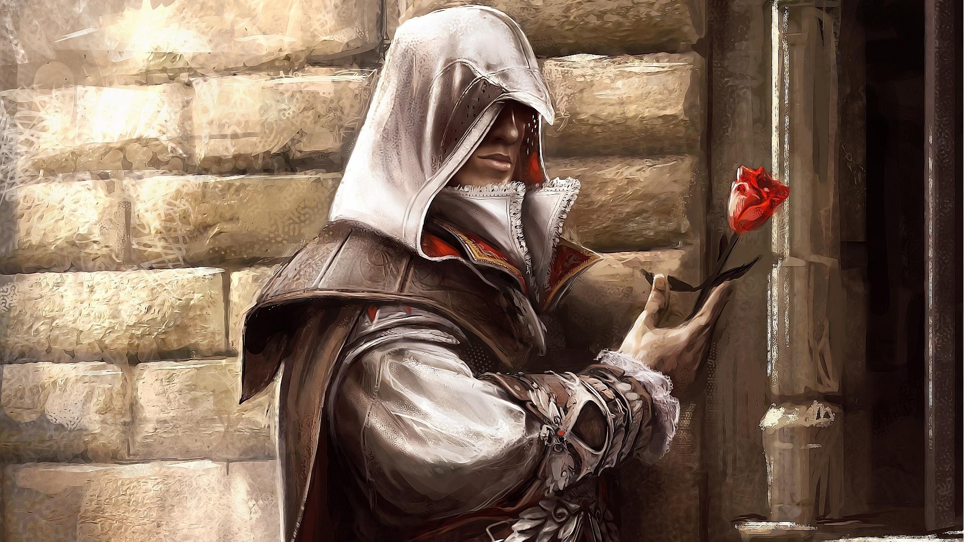 Homem encapuzado segurando uma rosa na mão
