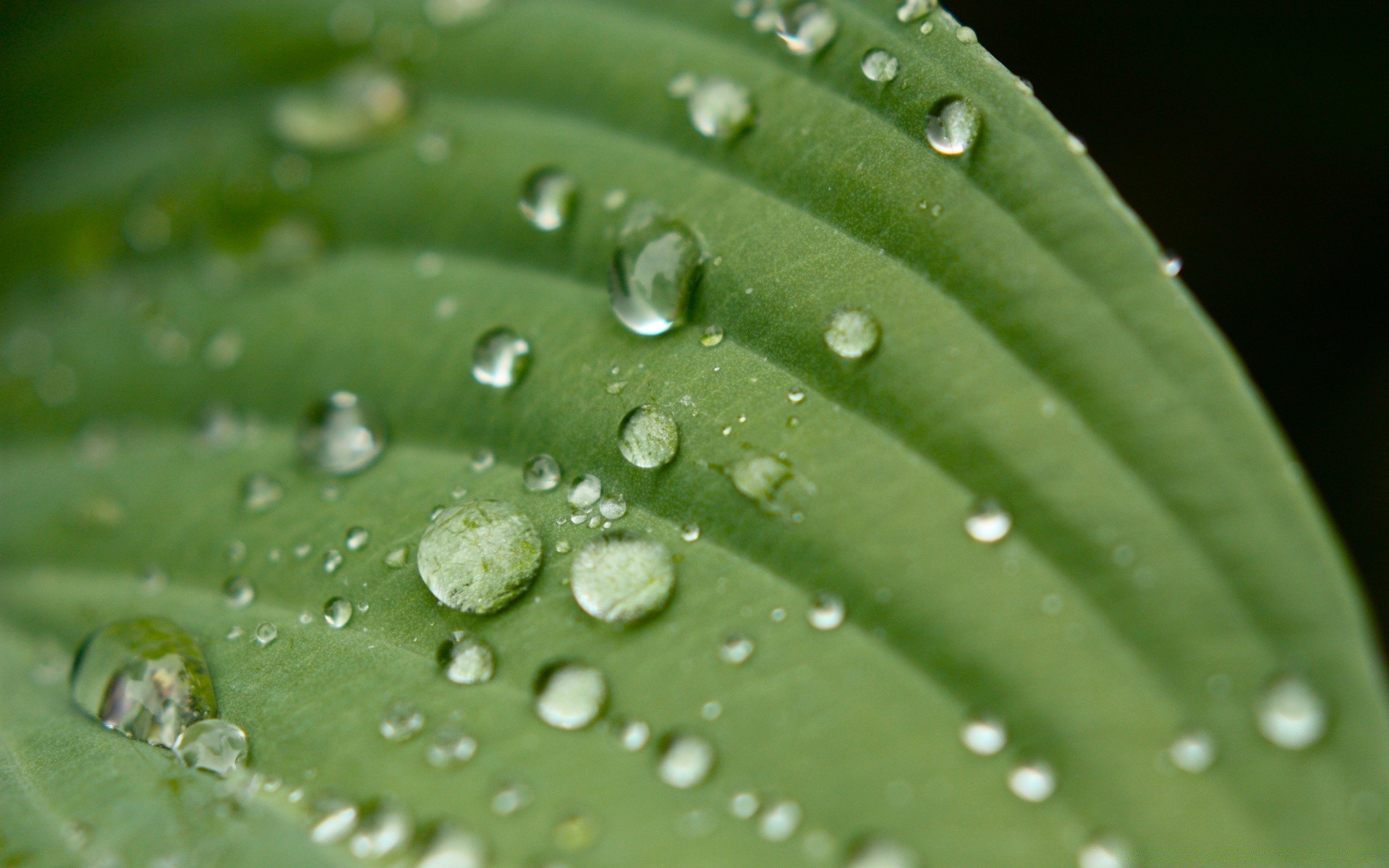 Fotografia macro. Orvalho. Gotas caindo da grama