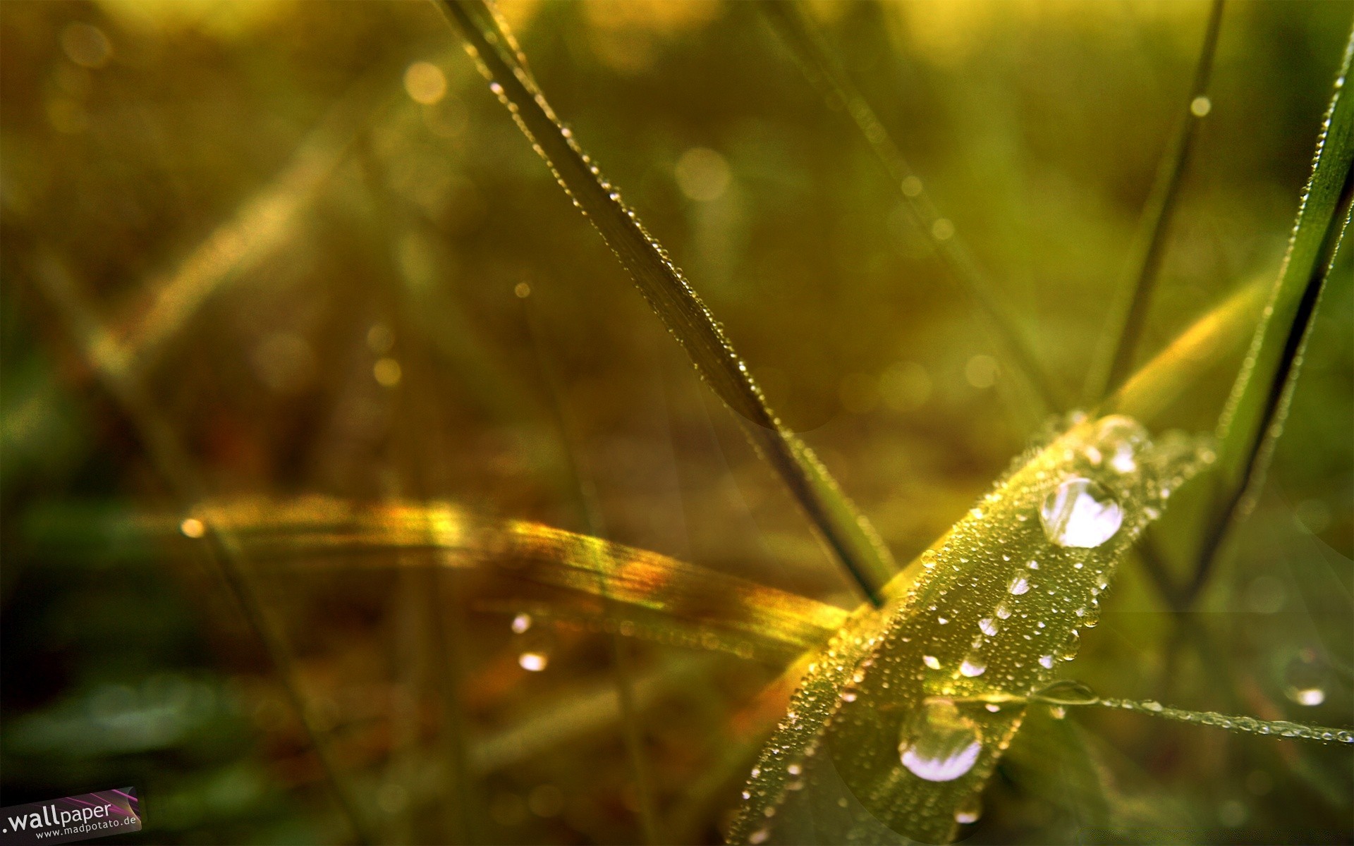 Gotas de orvalho na grama na luz do sol