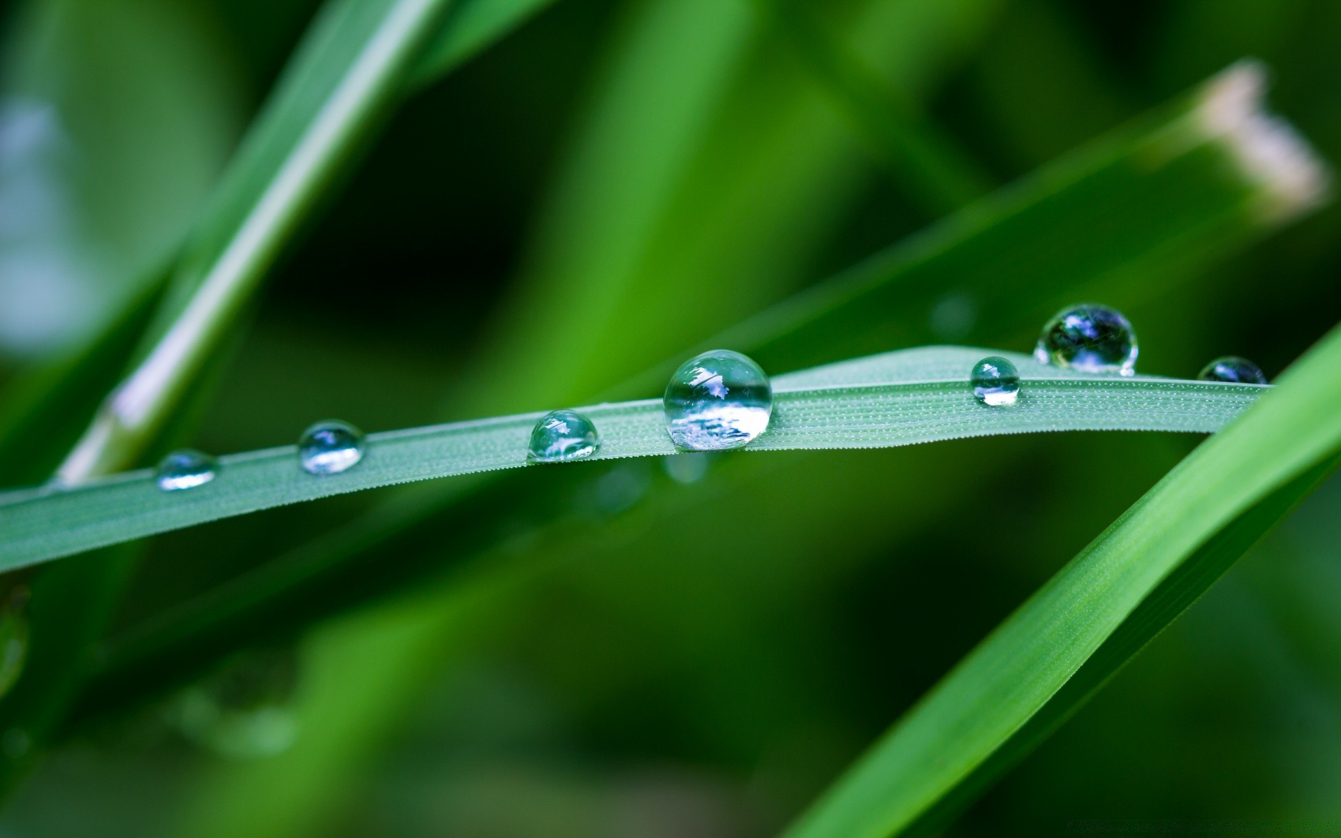 Grama verde ao sol da manhã e gotas de orvalho cintilantes