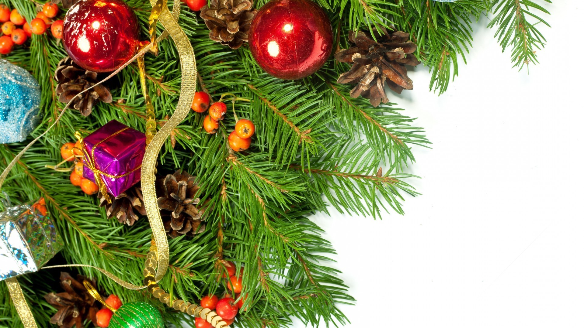 Árvore de Natal Brinquedos e ramos de abeto e cones