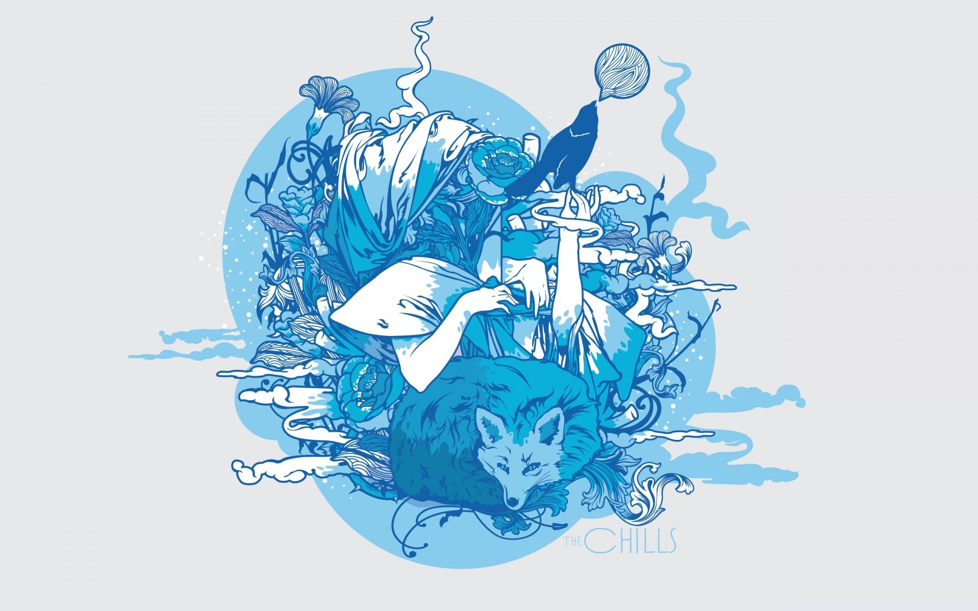 Ilustração em forma de raposa, pássaro e mãos femininas