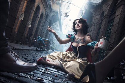 Conto de fadas jovem asfalto escuro rato sapatos