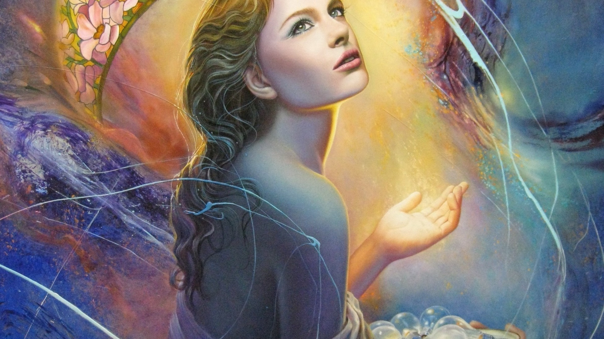 Mulher jovem bonita em um fundo abstrato desfocado. Pintura