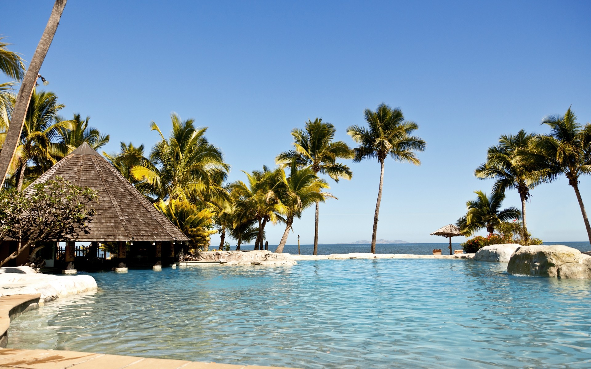 Viagens tropicais. Casa e praia na Cote d'Azur