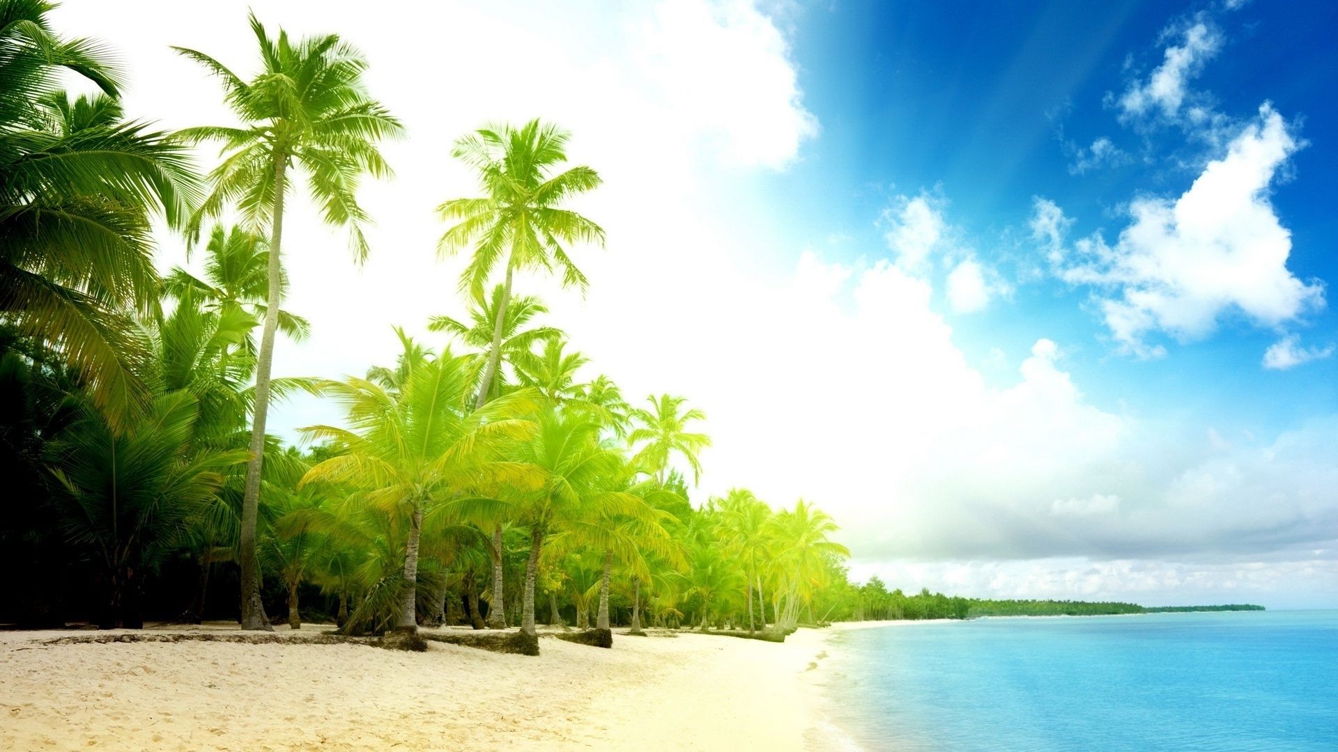 Palmeiras, oceano, relaxar em uma ilha tropical