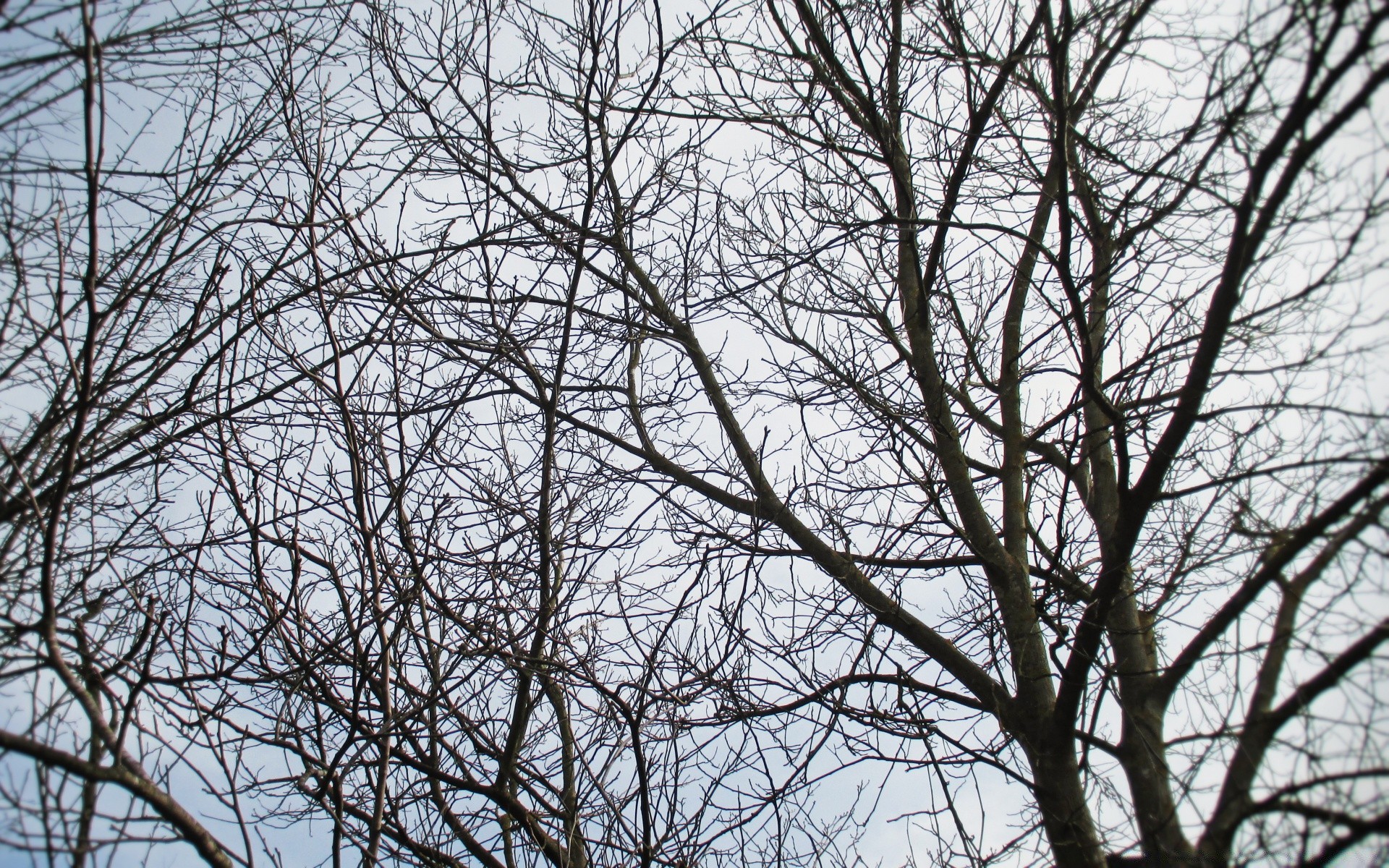 Galhos nus no fundo de um céu nublado