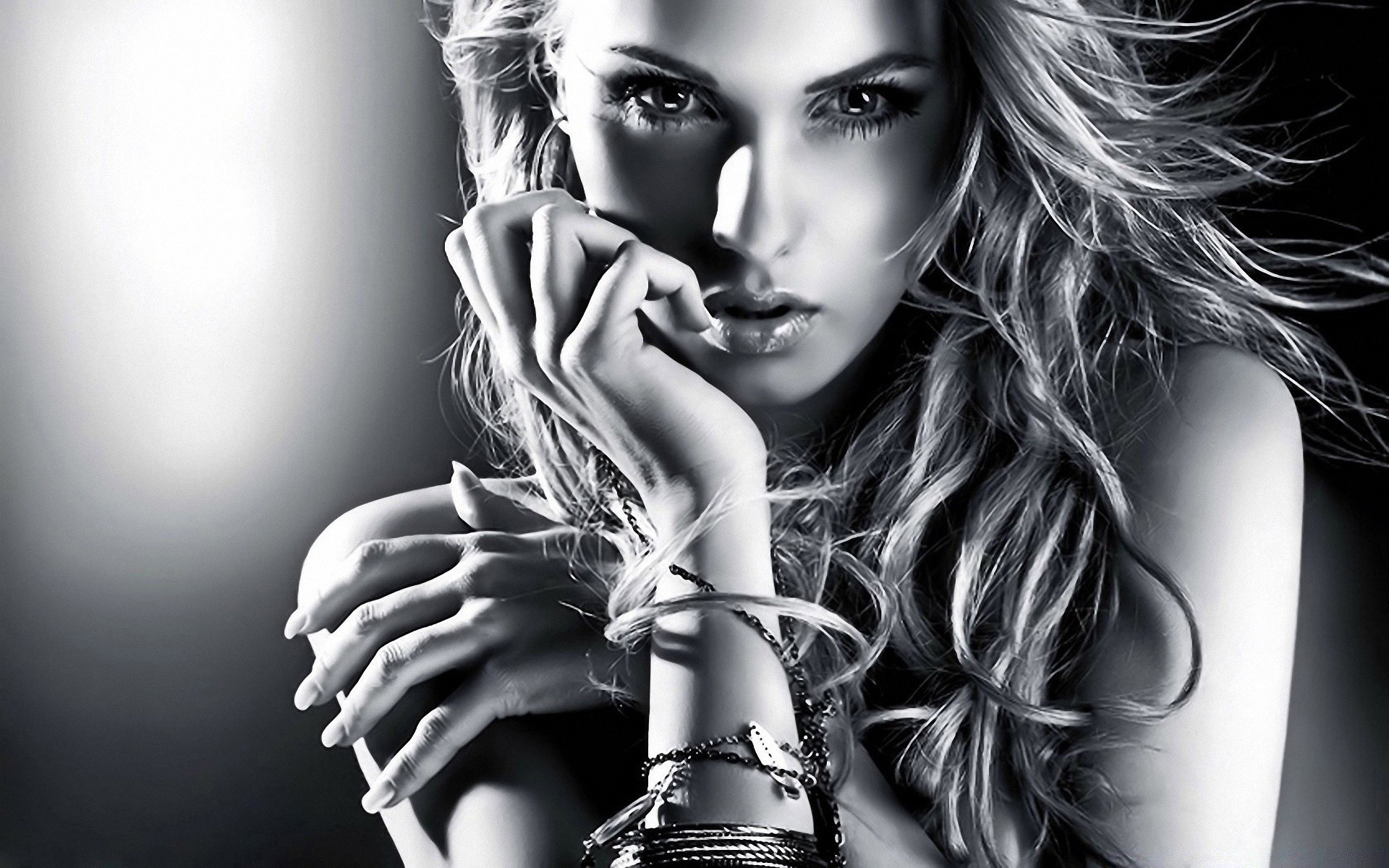 Retrato preto e branco de uma menina bonita