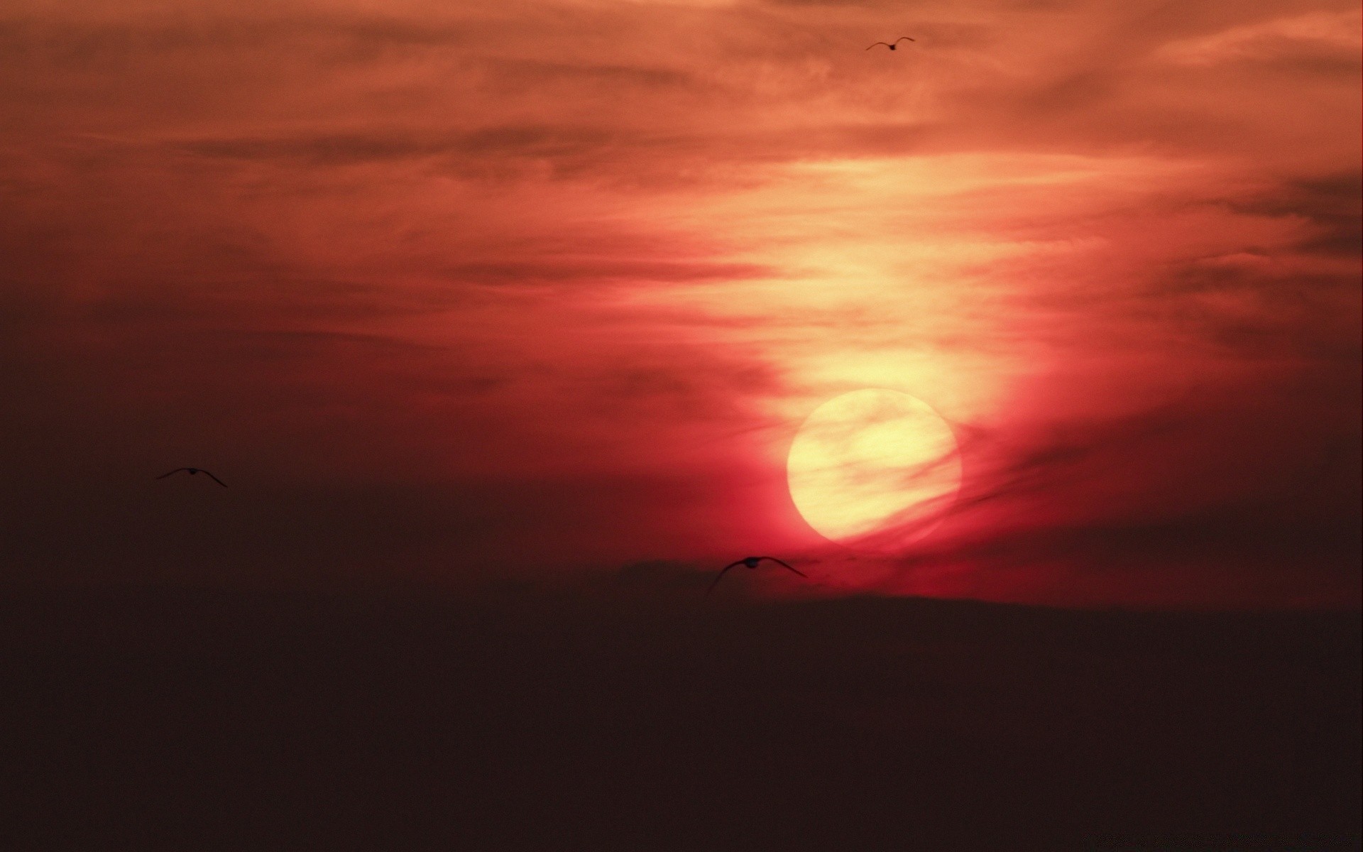 Imagem abstrata: dois ao pôr do sol entre as árvores