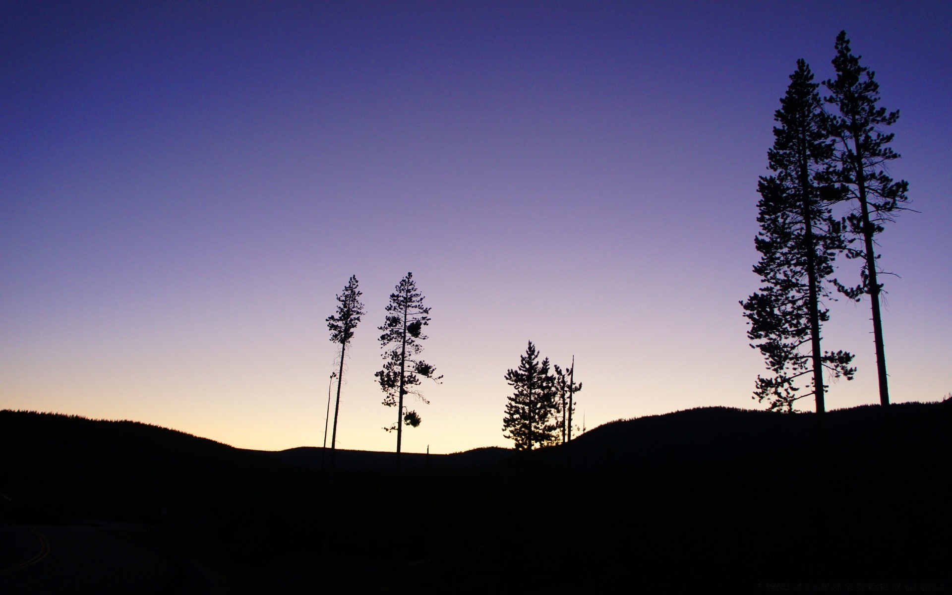 Silhuetas de árvores contra o céu ao pôr do sol