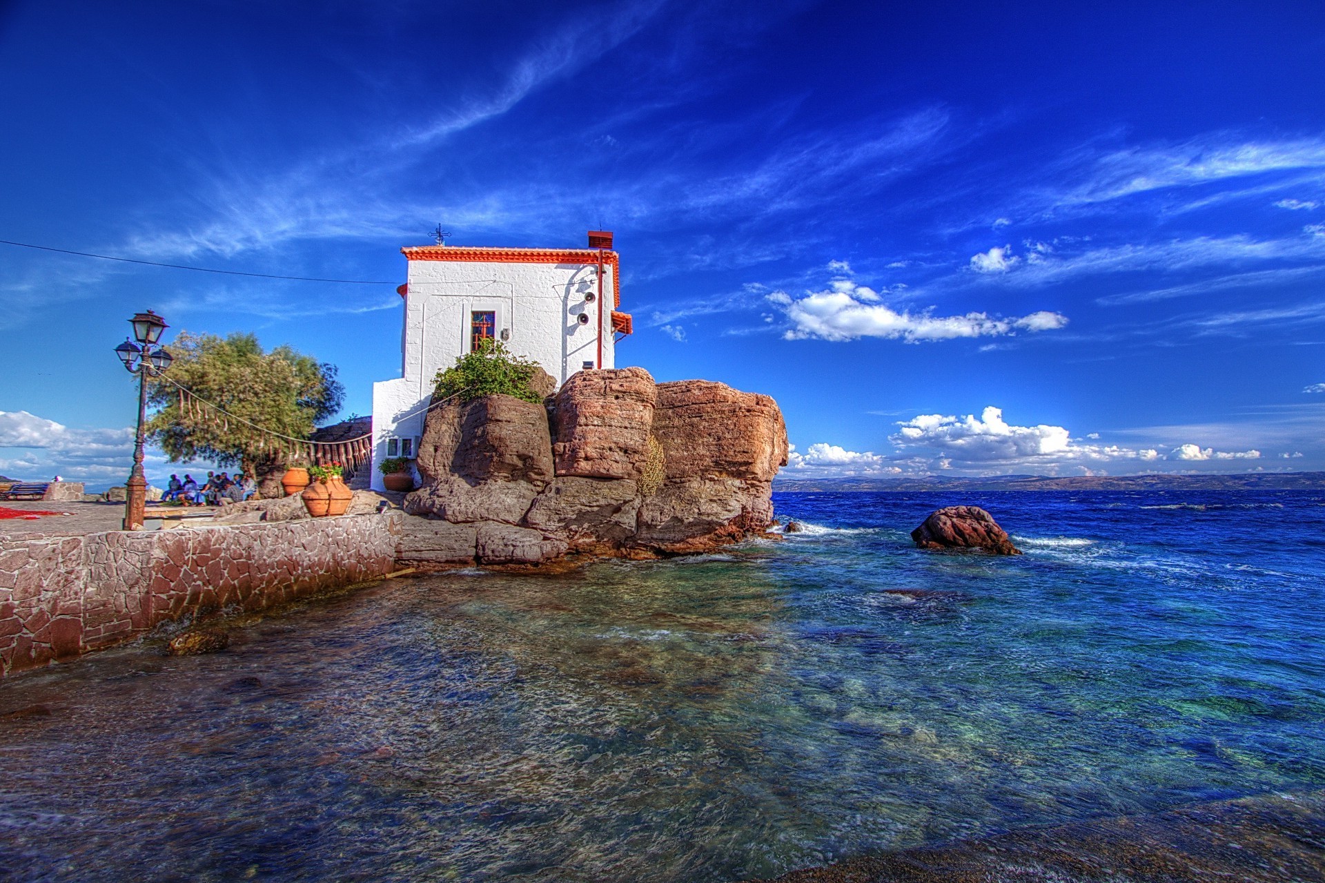 Fotopayazage com a imagem de um lago transparente entre as pedras contra o fundo de uma Alta Floresta de coníferas e montanhas