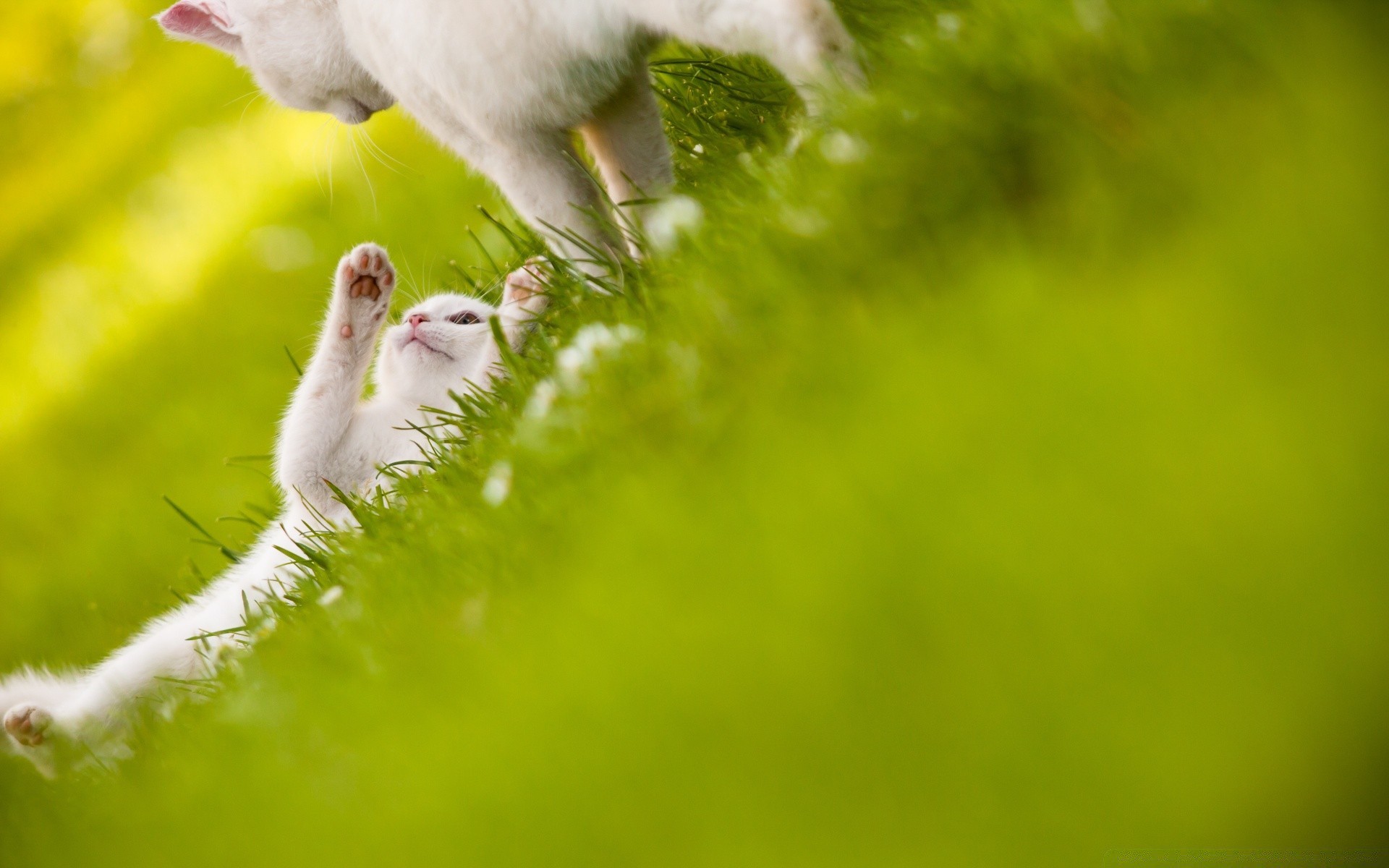 Gatos brincando na grama verde