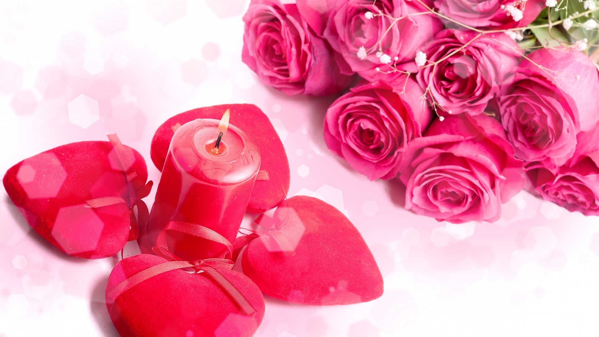 Vela Rosa rodeada por um coração. rosas cor-de-rosa