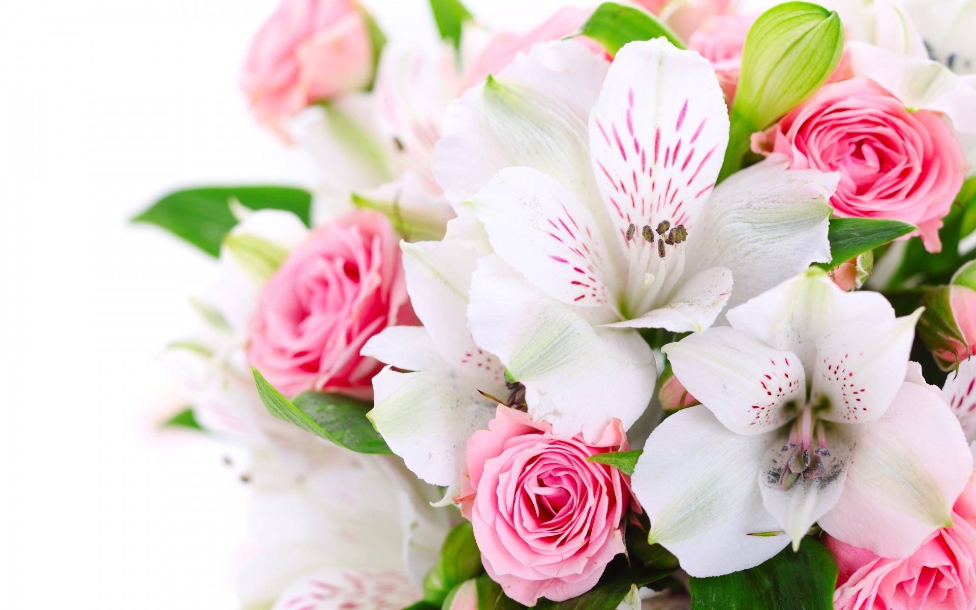 Buquê de lírios pobres e rosas cor-de-rosa